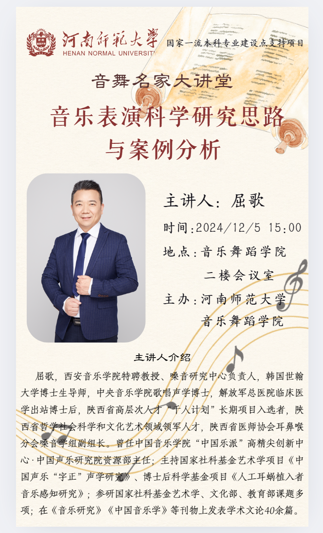 西安音乐学院屈歌教授将应邀做客“音舞名家大讲堂”