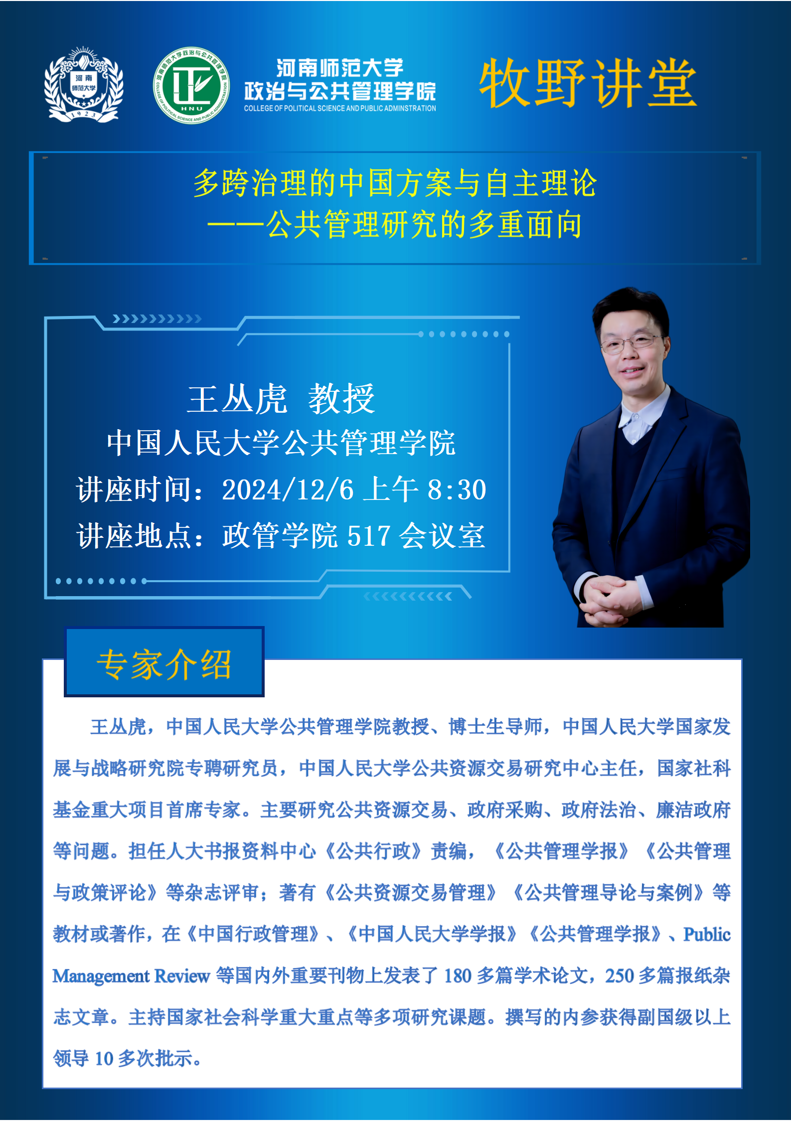 中国人民大学王丛虎教授将应邀做客“牧野讲堂”