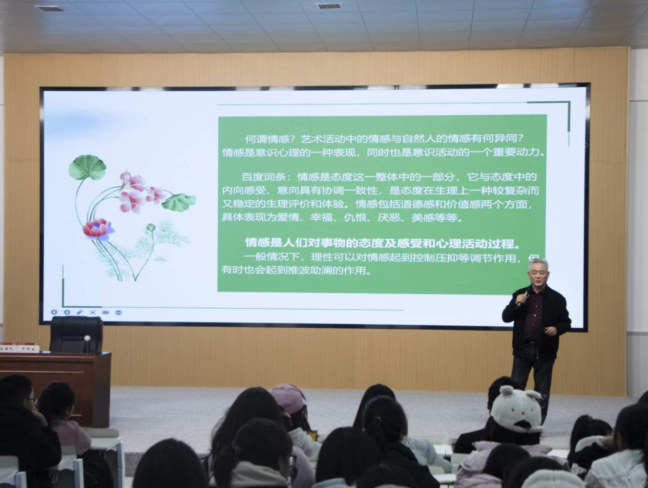 于同云以“何为朗诵”为切入点,深入浅出地讲解了方言与普通话的关系,从“忌读书腔调”“忌语言的阅读固定格式”和“忌语言的情绪状态化”三个角度系统论述了朗诵艺术的核心要义与技巧。他表示,朗诵艺术的最高境界是“悦耳,入心”,好的朗诵者必须做到三忘记“忘记文字,忘记声音,忘记嘴巴”,要将熟悉的文学作品语言转化为现实生活中正在发生的语言,边感觉、边思考、边说话。于同云通过对《登鹳雀楼》《致橡树》《咏鹅》等作品进行示范与分析,让大家深刻体会到朗诵艺术的魅力。现场,于同云激情朗诵了《海燕》,他激昂的情绪和精湛的朗诵艺术,将现场氛围推向了高潮。活动开始前,我校大学生朗诵艺术团成员进行原创表演《我此番赴死》,在朗诵艺术顾问聘任仪式暨座谈会上,文学院党委书记孙昌松为于同云颁发聘书,聘请于同云为大学生朗诵艺术团艺术顾问。