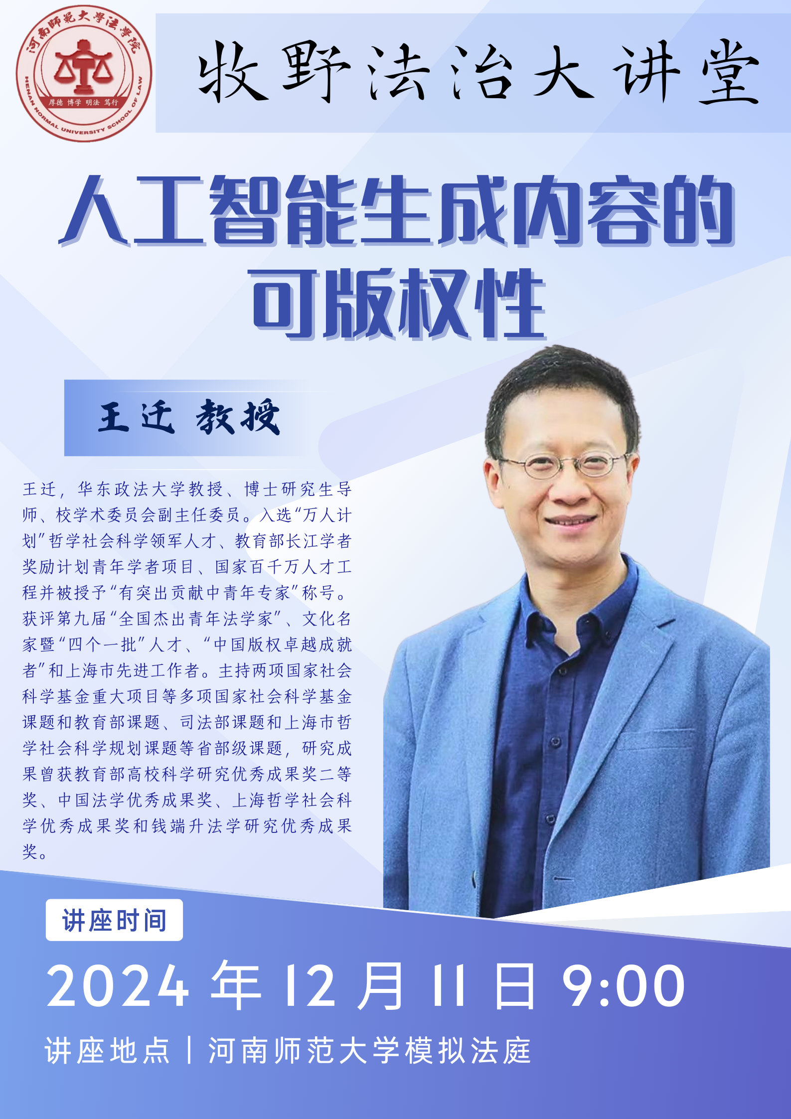 华东政法大学王迁教授将应邀做客“牧野法治大讲堂”