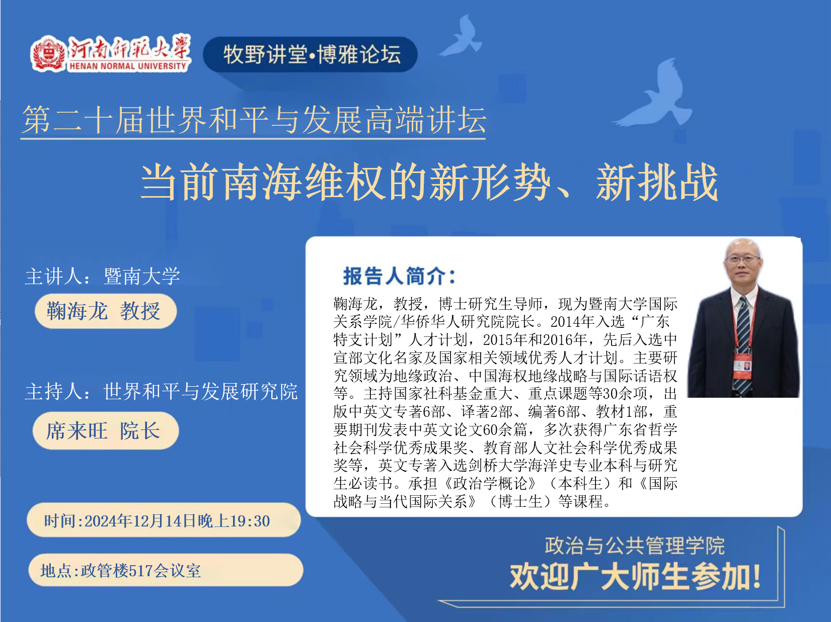 暨南大学鞠海龙教授将应邀做客牧野讲堂·博雅论坛