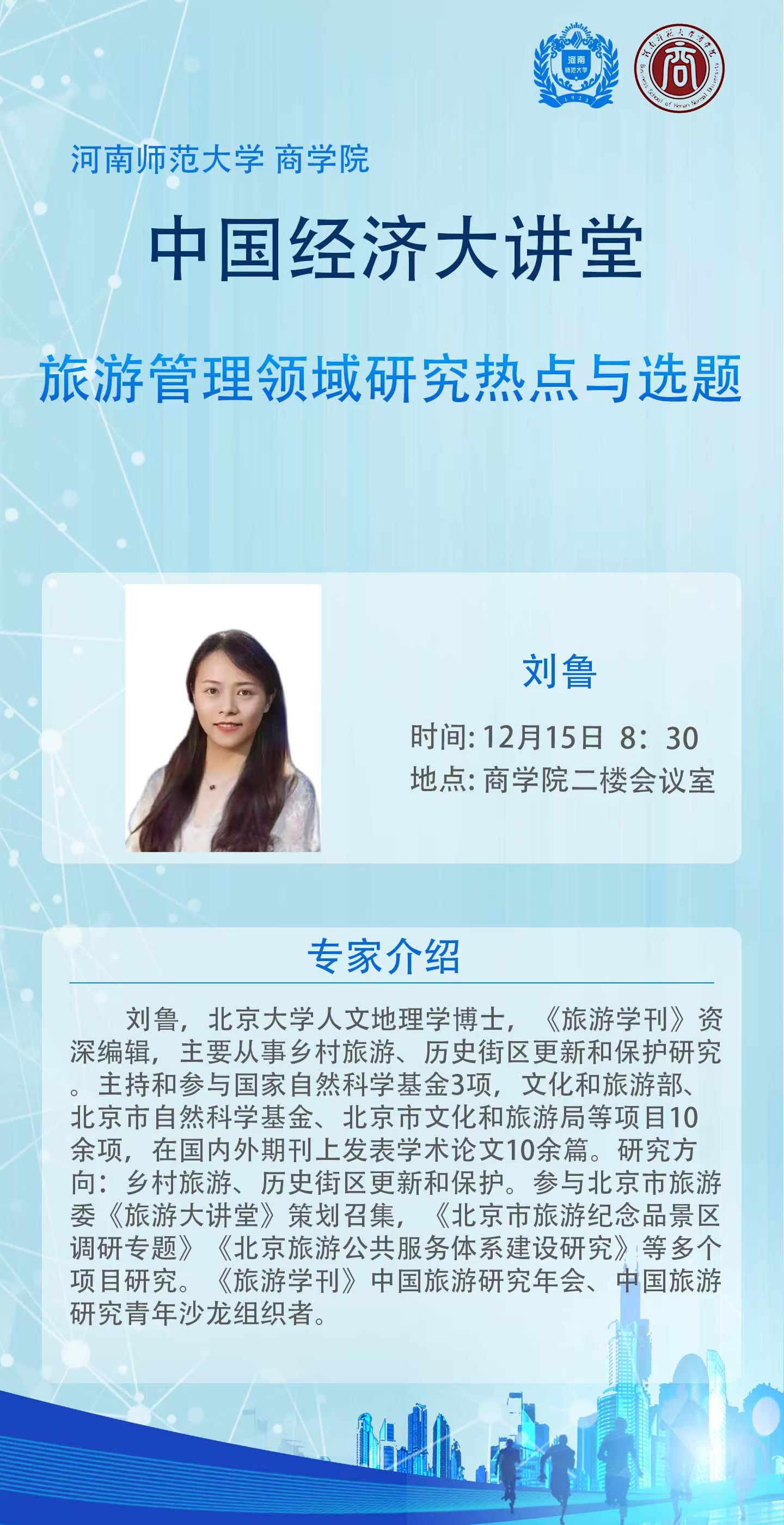 《旅游学刊》刘鲁资深编辑将应邀做客中国经济大讲堂