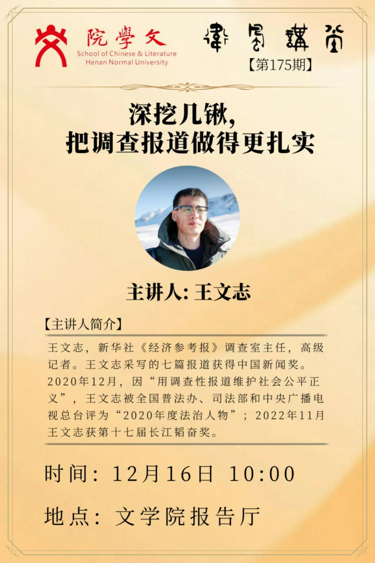 新华社《经济参考报》调查室王文志主任将应邀做客卫风讲堂