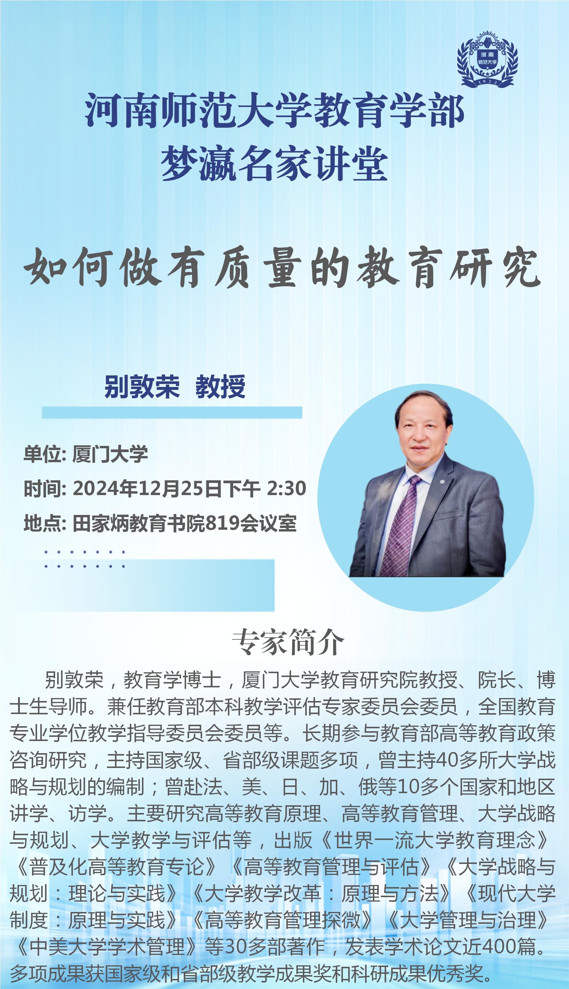 厦门大学别敦荣教授将应邀做客“梦瀛名家讲堂”