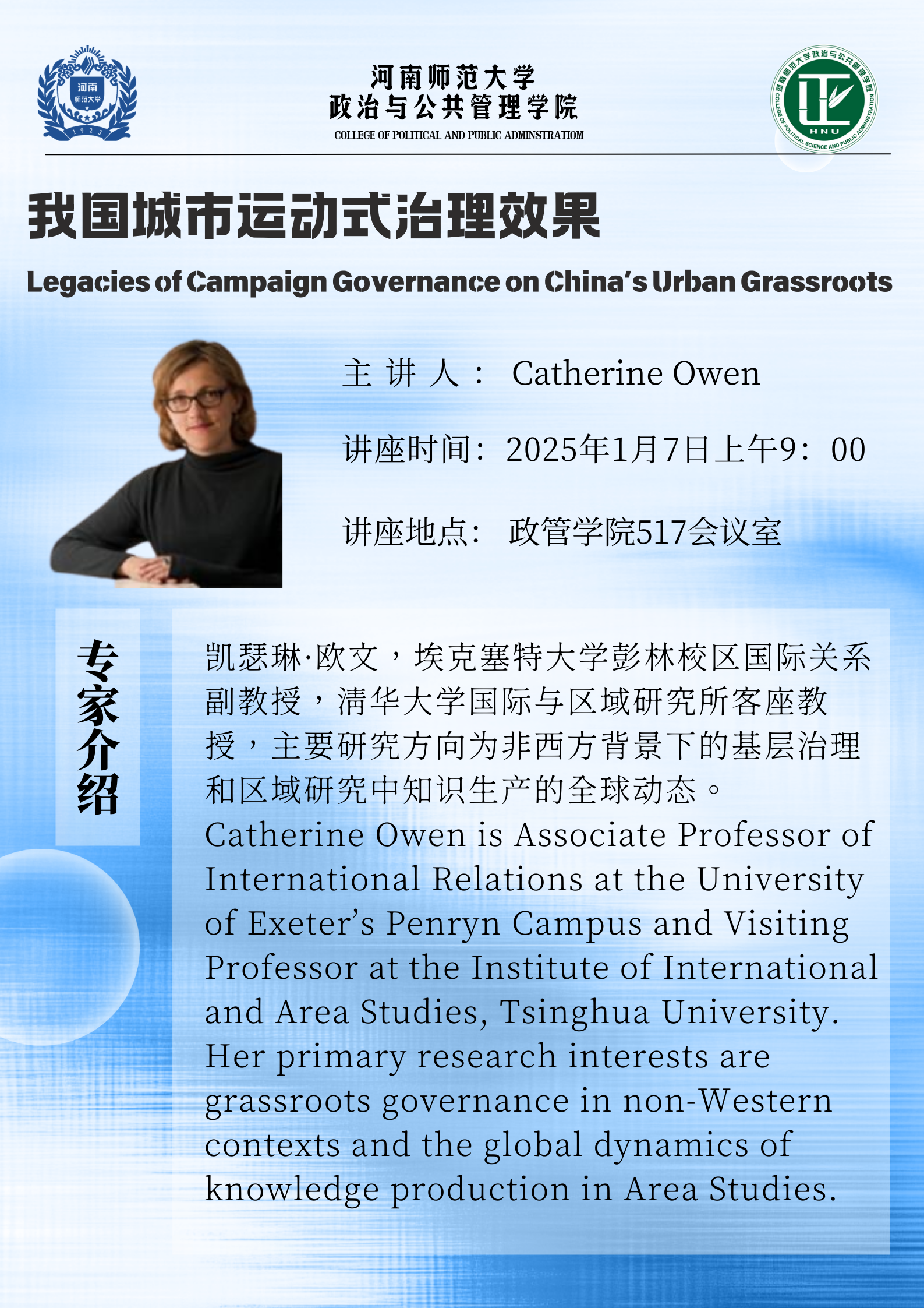 埃克塞特大学彭林校区国际关系凯瑟琳·欧文教授将应邀做客牧野讲堂·博雅论坛