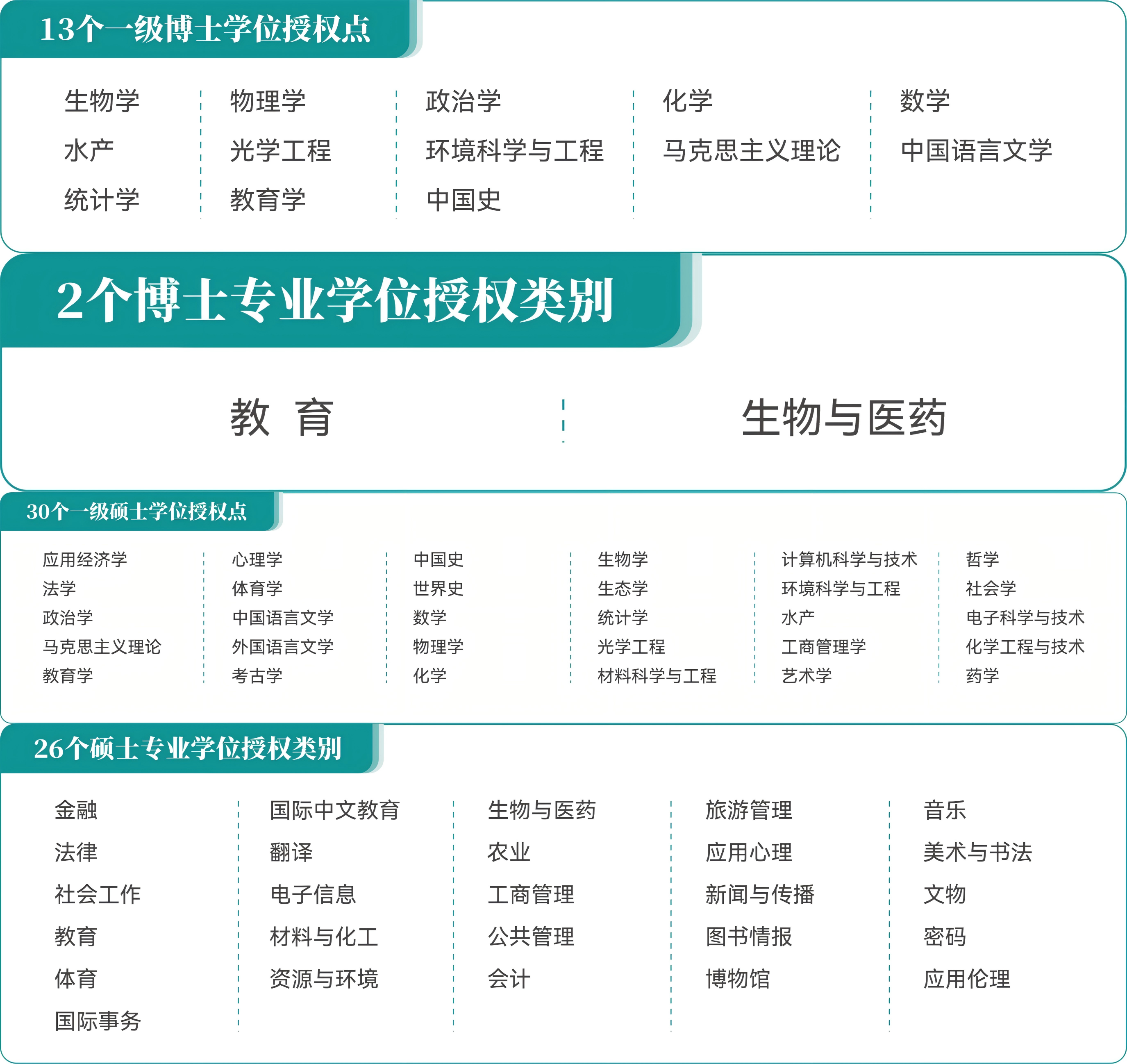 立德树人成效显著。全面实施“三全育人”综合改革,着力构建一体化育人体系,高度重视马克思主义学院建设,推动思想政治理论课改革创新。注重思想政治工作品牌培育,4个品牌入选教育部高校思想政治工作精品项目。着力夯实平台建设,获批“全国高校思想政治理论课教师研修基地”“全国高校思想政治工作队伍培训研修中心”。坚持以学生为中心,加大专业优化调整力度,人才培养供给侧核心要素持续锻强,通过教育部本科教育教学审核评估。获批34个国家级、23个省级一流本科专业建设点,专业内涵建设成效凸显。获批15门国家级、121门省级一流本科课程,开设230门博约通识课程,高质量课程供给更加充足。荣获国家级教学成果奖7项,位居全省第一。学生获巴黎奥运会跆拳道季军、中国青少年科技创新奖,在中国国际大学生创新大赛、“挑战杯”全国大学生课外学术科技作品竞赛、大学生艺术展演活动等竞赛中取得优异成绩。