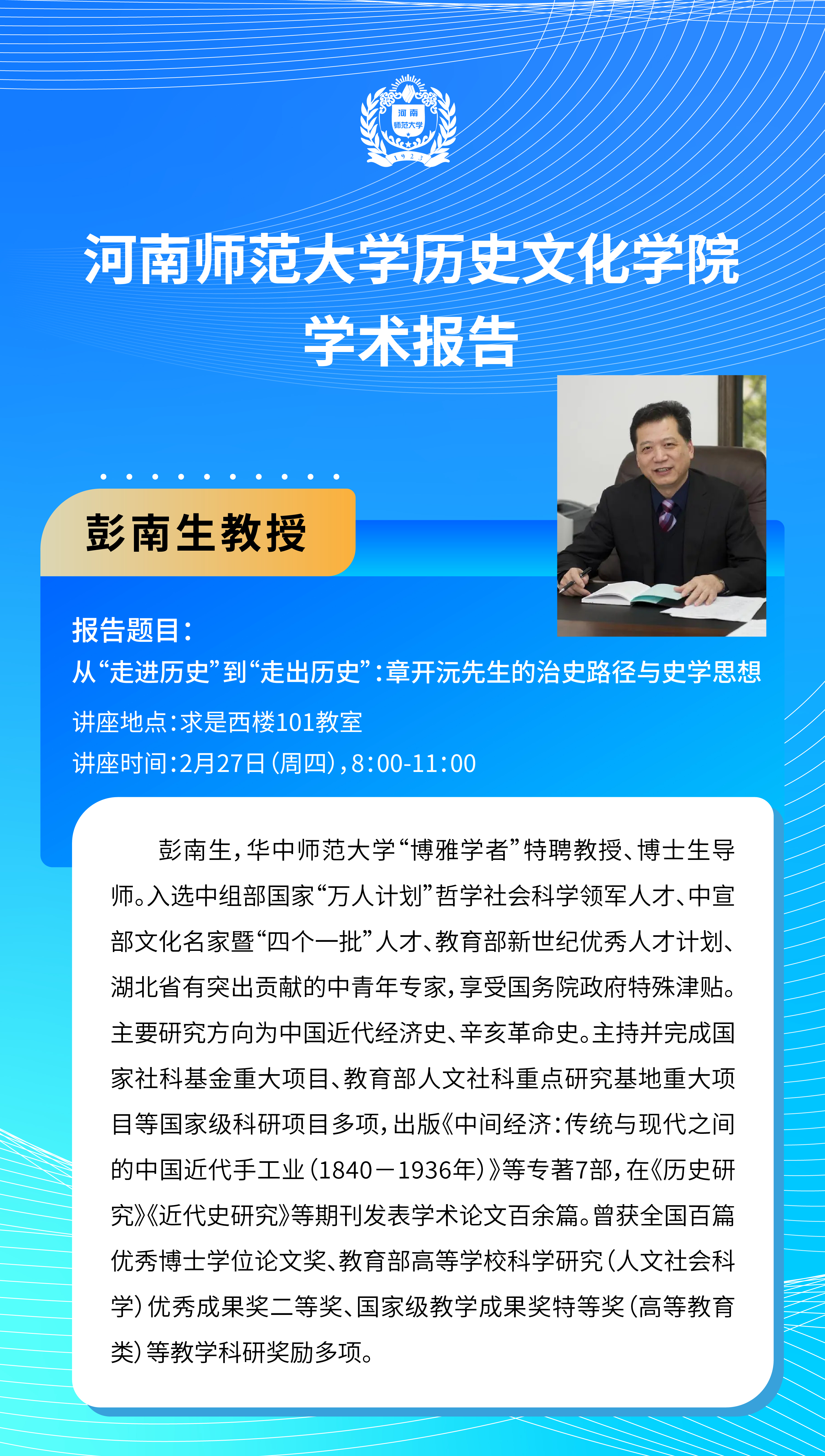 华中师范大学彭南生教授将应邀做客史学名家讲坛