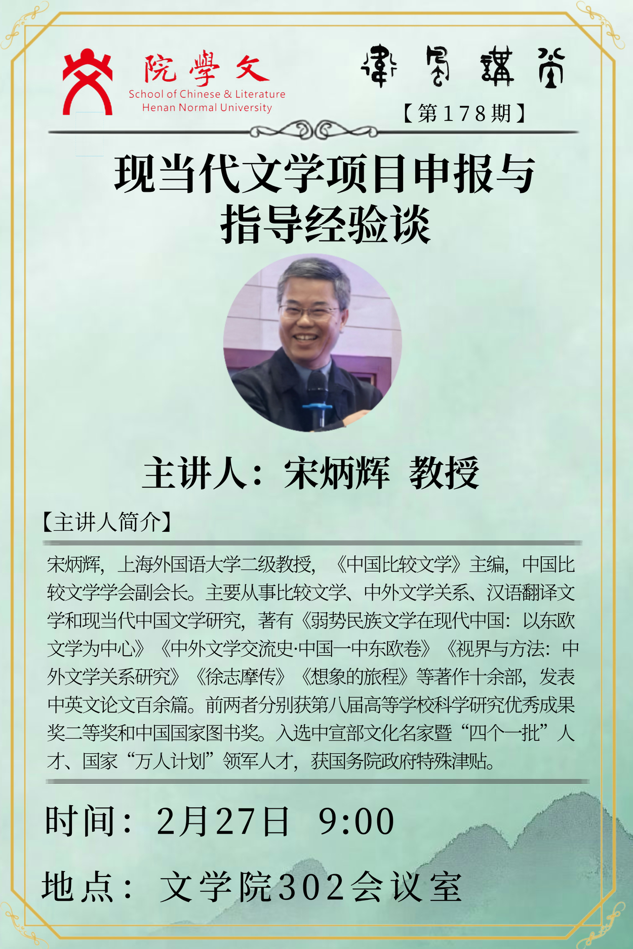 上海外国语大学宋炳辉教授将应邀做客“卫风讲堂”