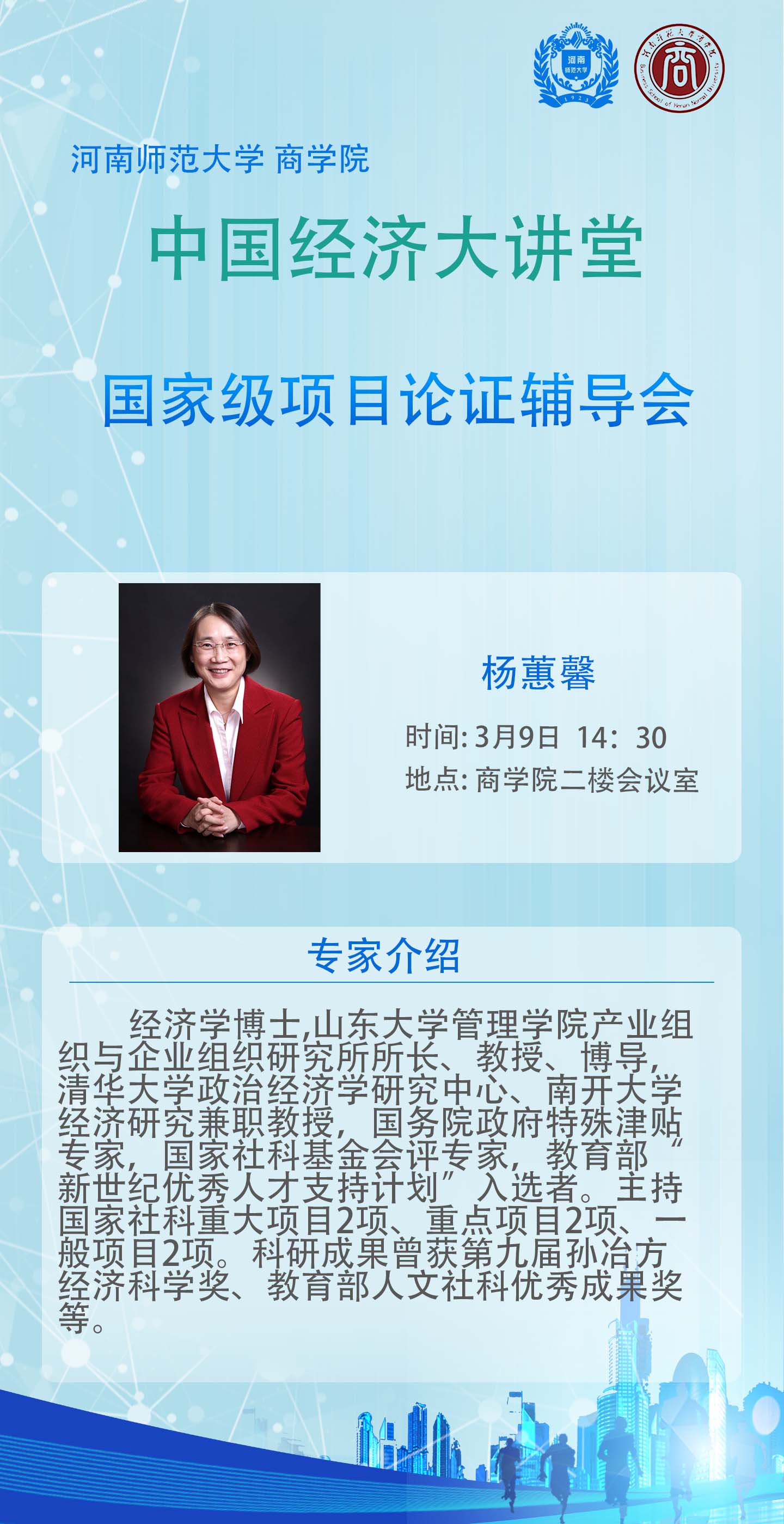 山东大学杨蕙馨教授将应邀做客“中国经济大讲堂”