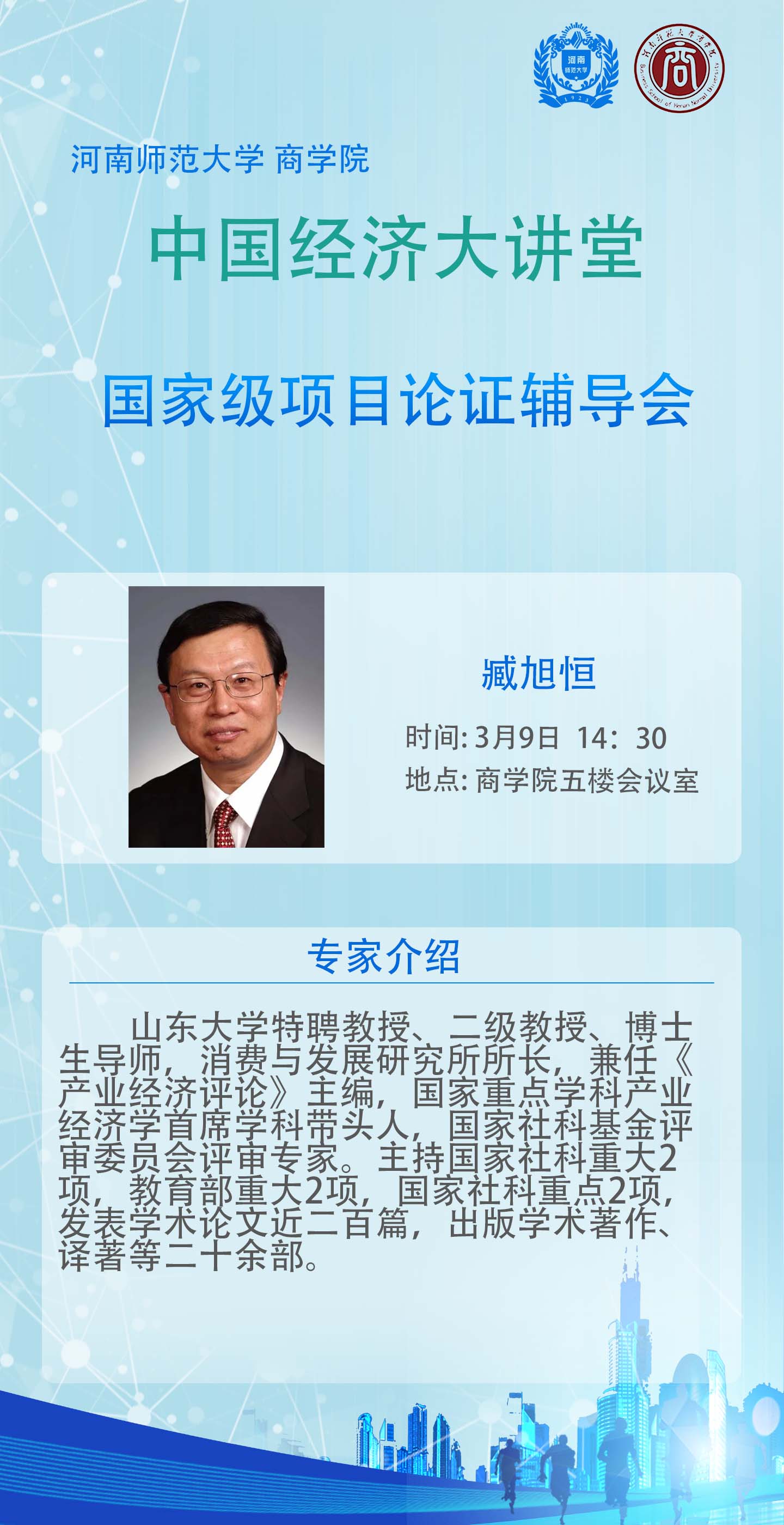山东大学臧旭恒教授将应邀做客“中国经济大讲堂”