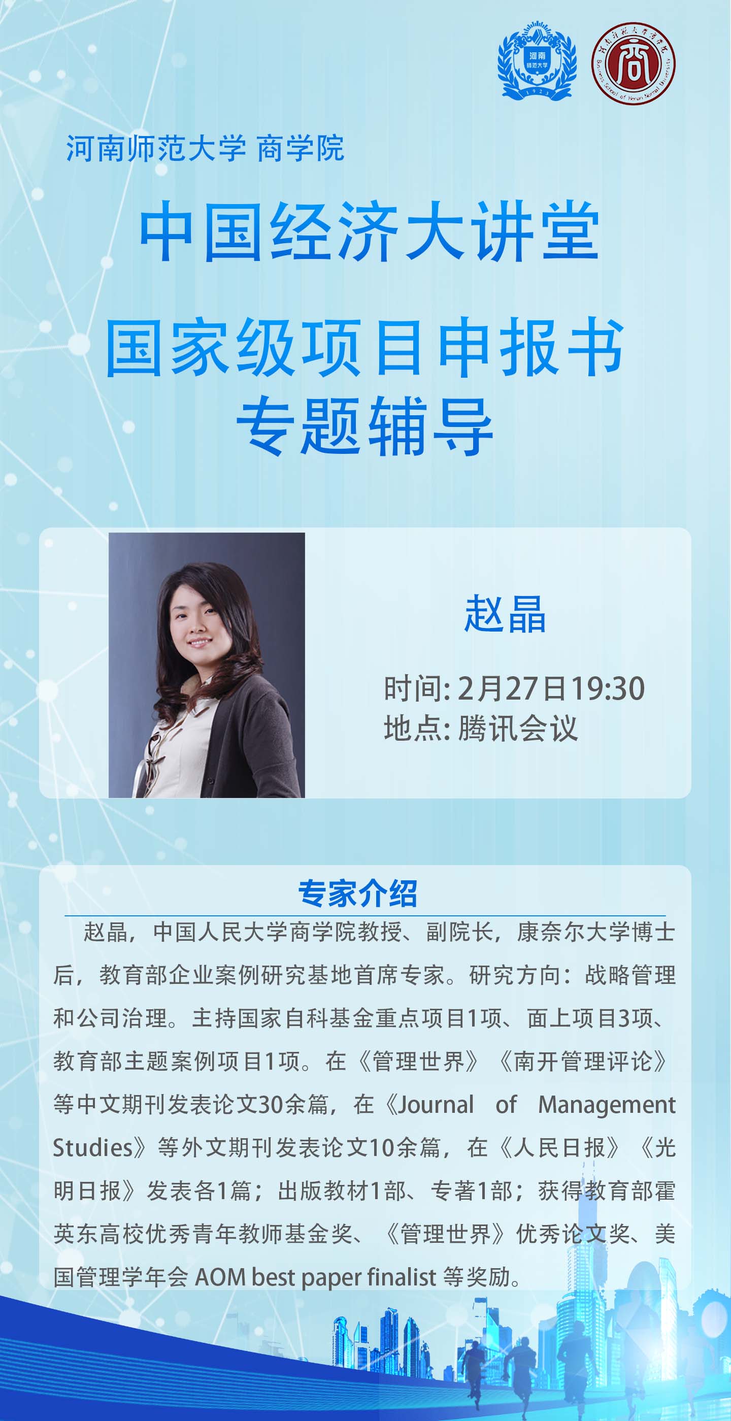 中国人民大学赵晶教授将应邀做客“中国经济大讲堂”