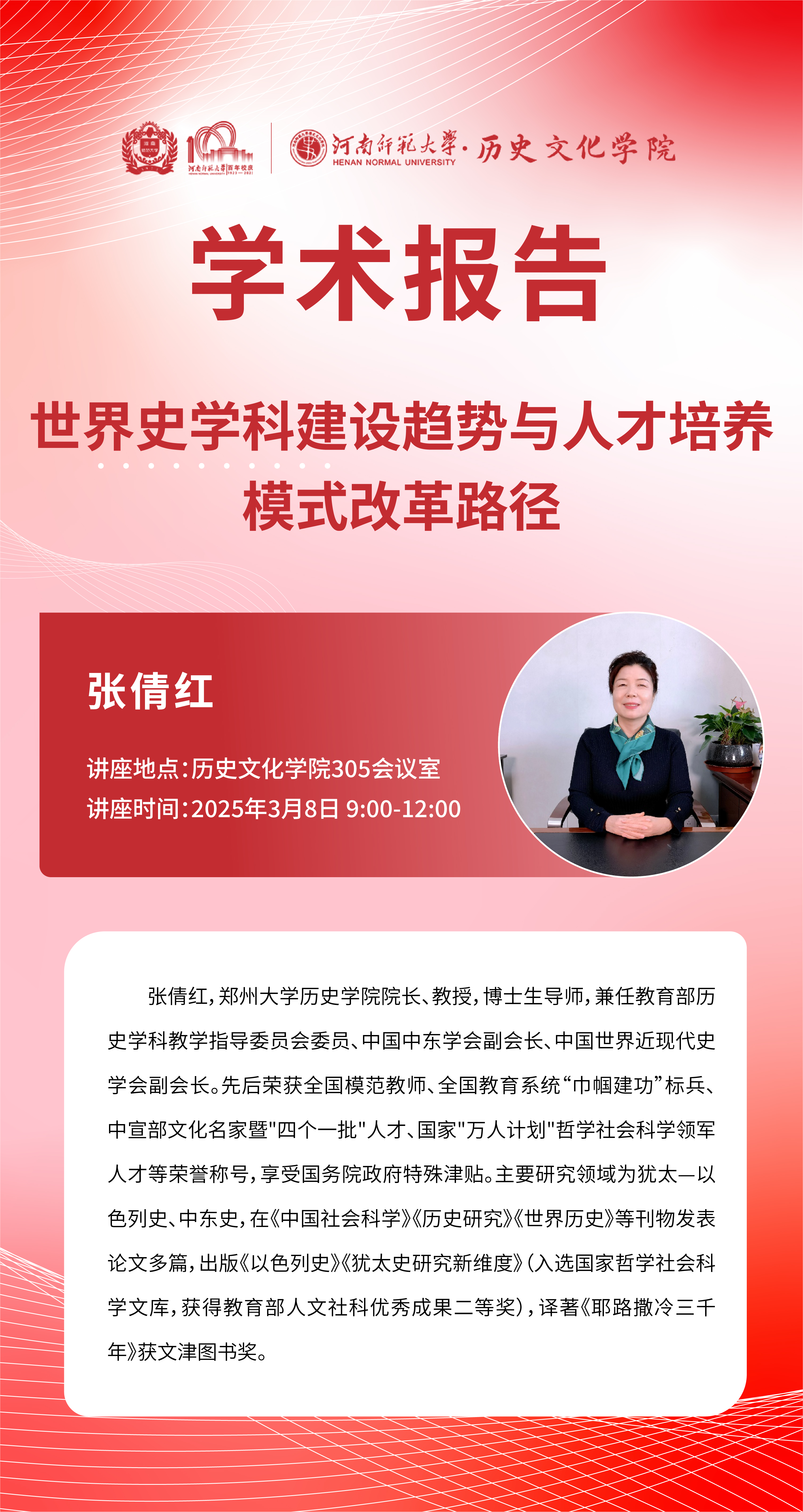 郑州大学张倩红教授将应邀做客“史学名家讲坛”