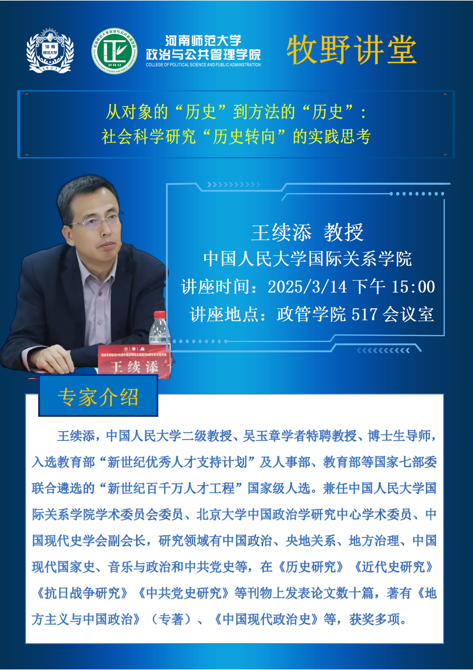 中国人民大学王续添教授将应邀做客“牧野讲堂”