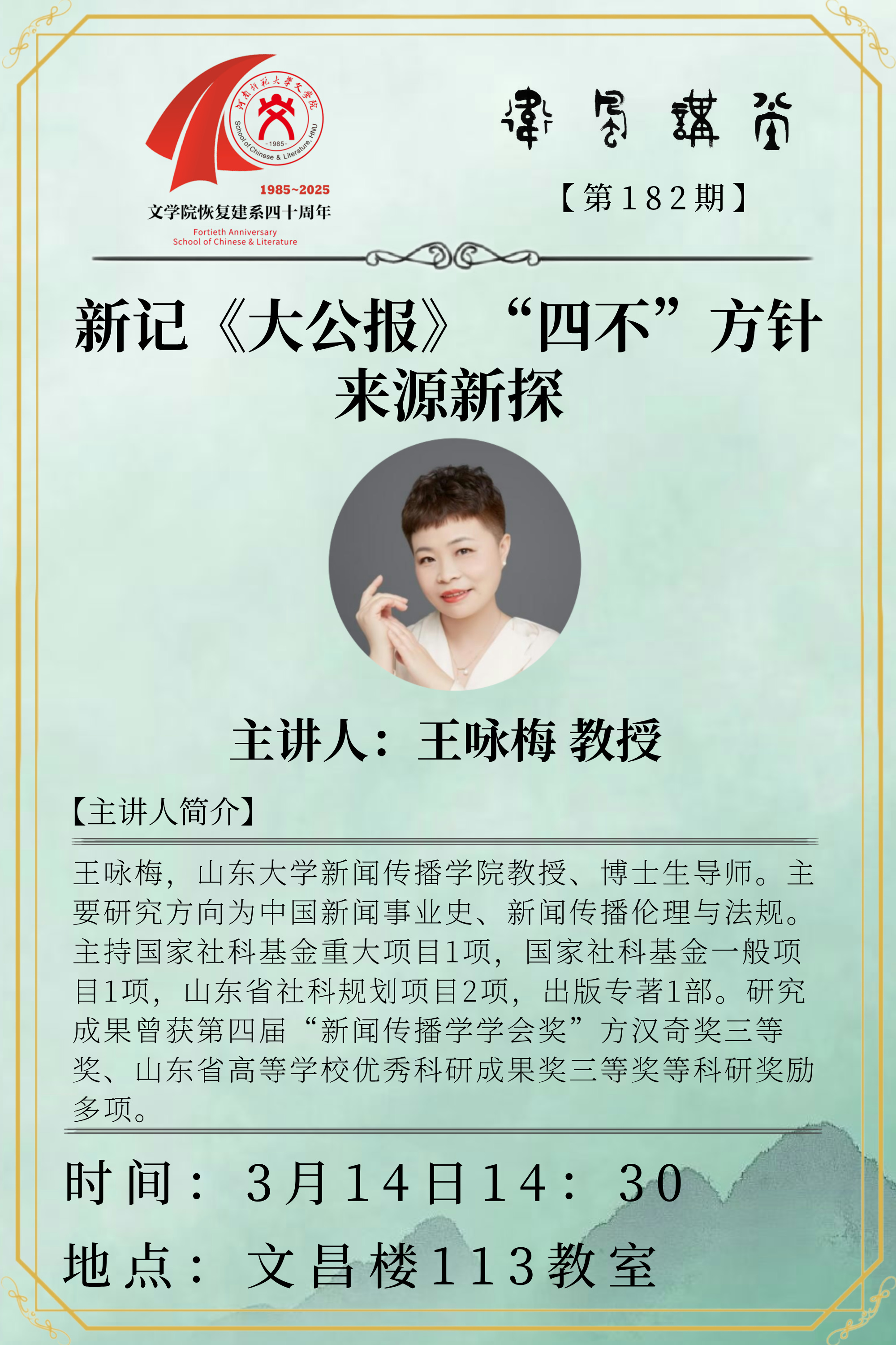 山东大学王咏梅教授将应邀做客“卫风讲堂”