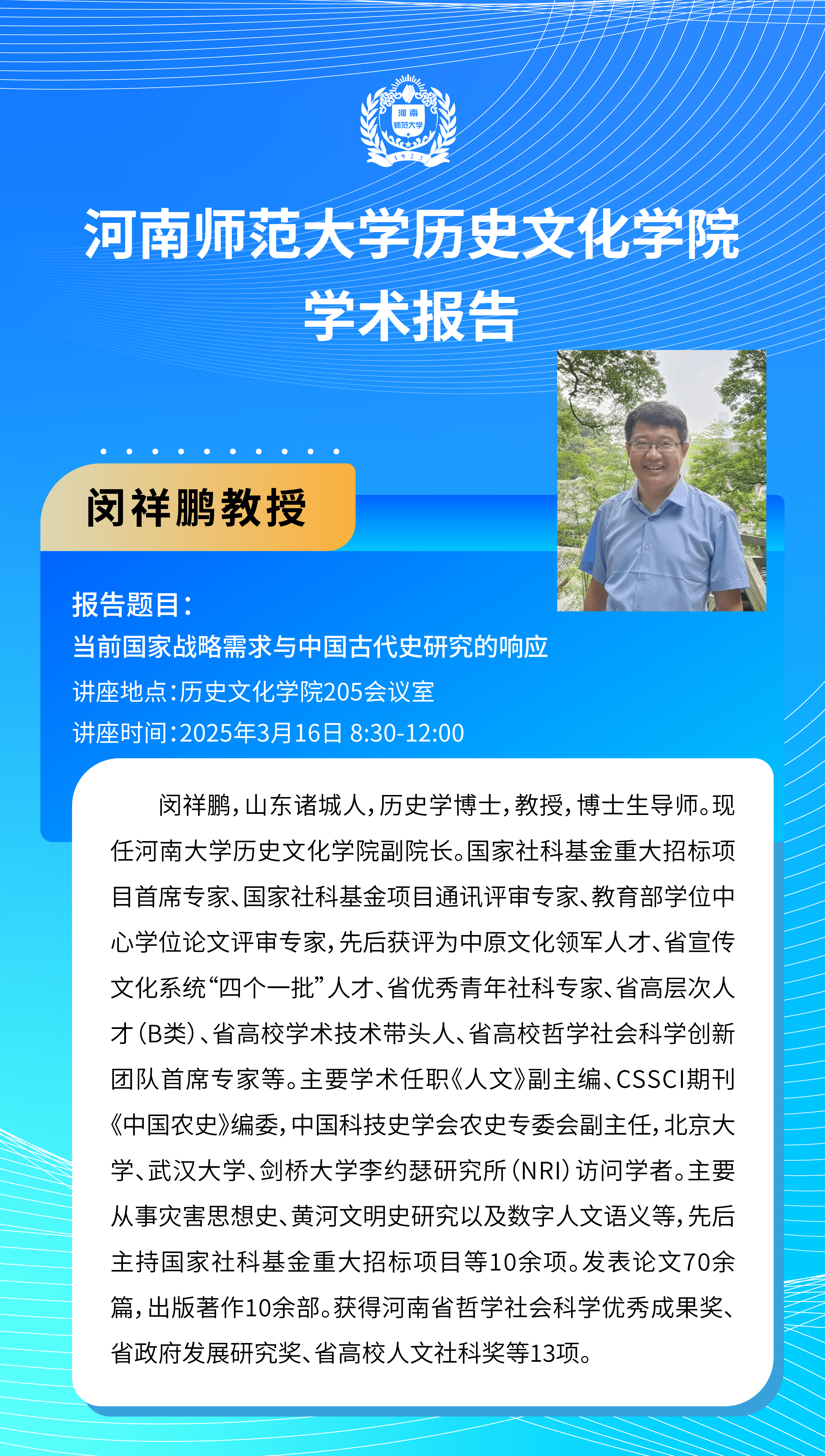 河南大学闵祥鹏教授将应邀做客“史学名家讲坛”
