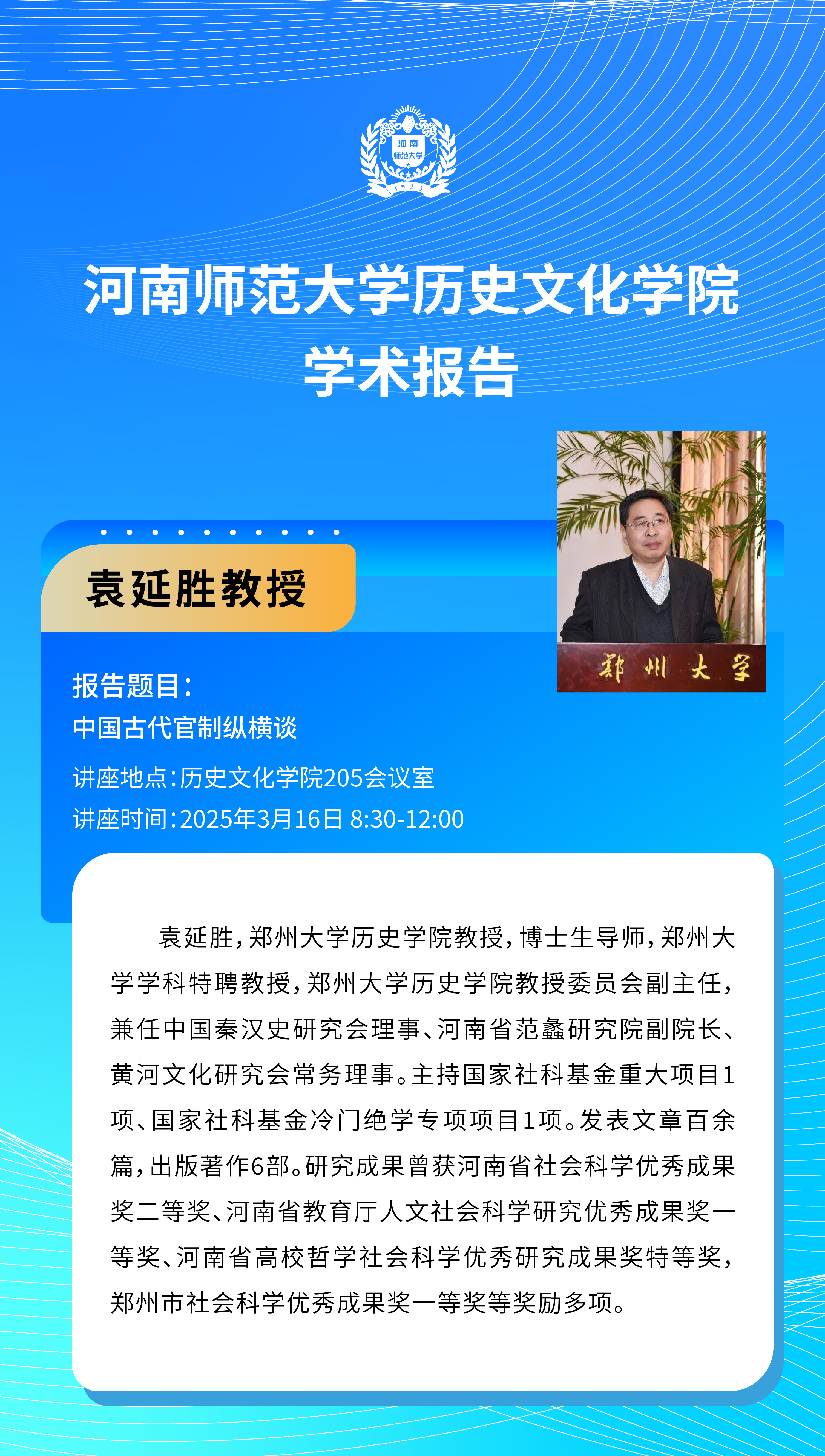 郑州大学袁延胜教授将应邀做客“史学名家讲坛”