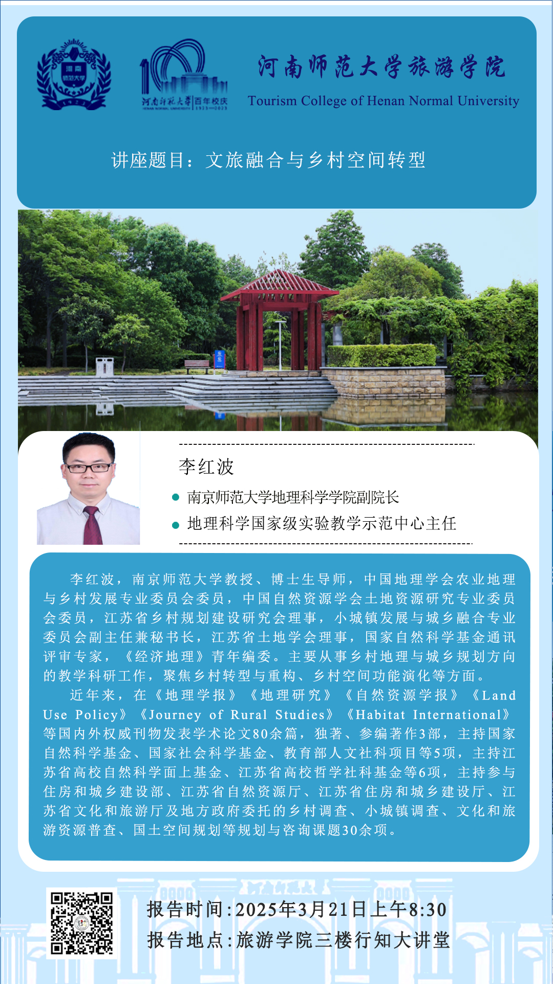 南京师范大学李红波教授将应邀做客“高端专家行知讲坛”