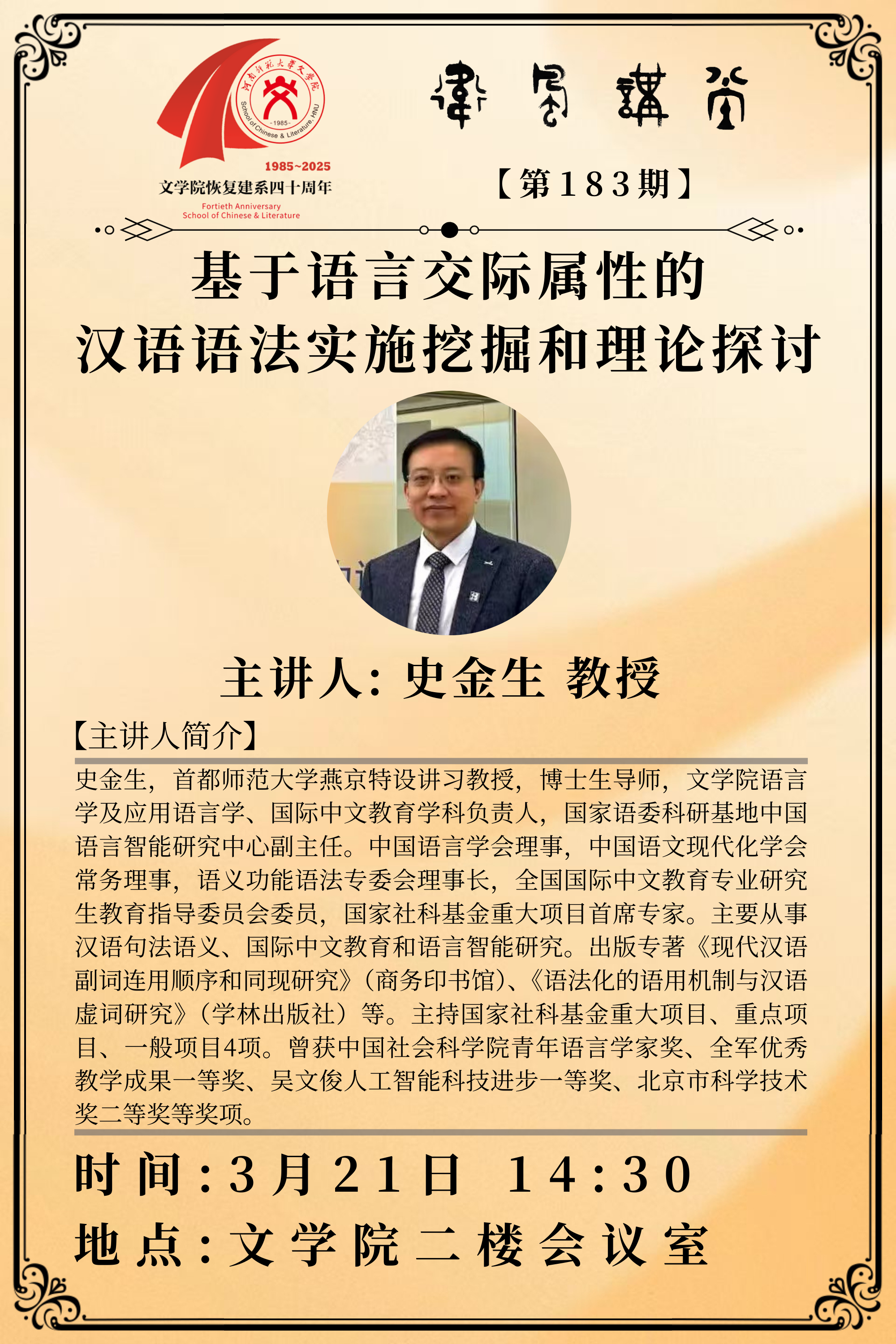 首都师范大学史金生教授将应邀做客“卫风讲堂”