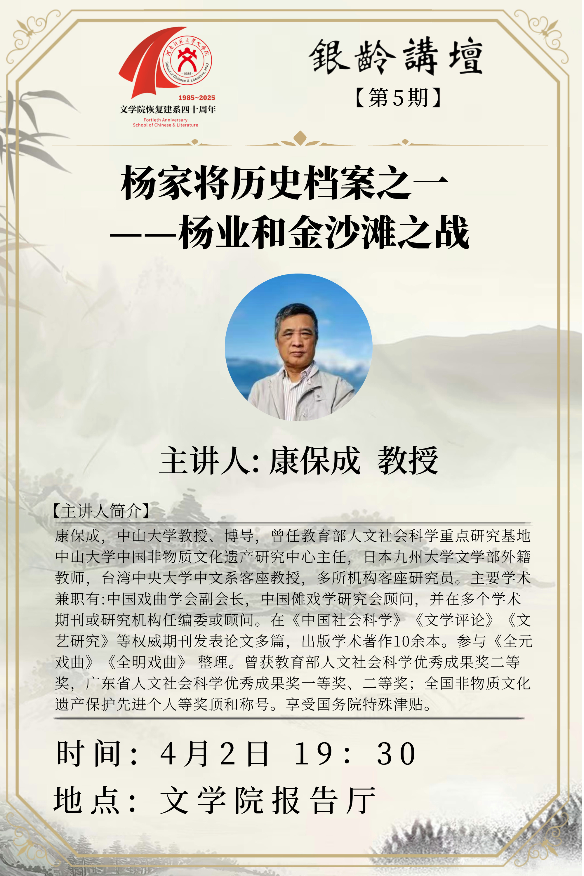 中山大学康保成教授将应邀做客第五期“银龄讲坛”