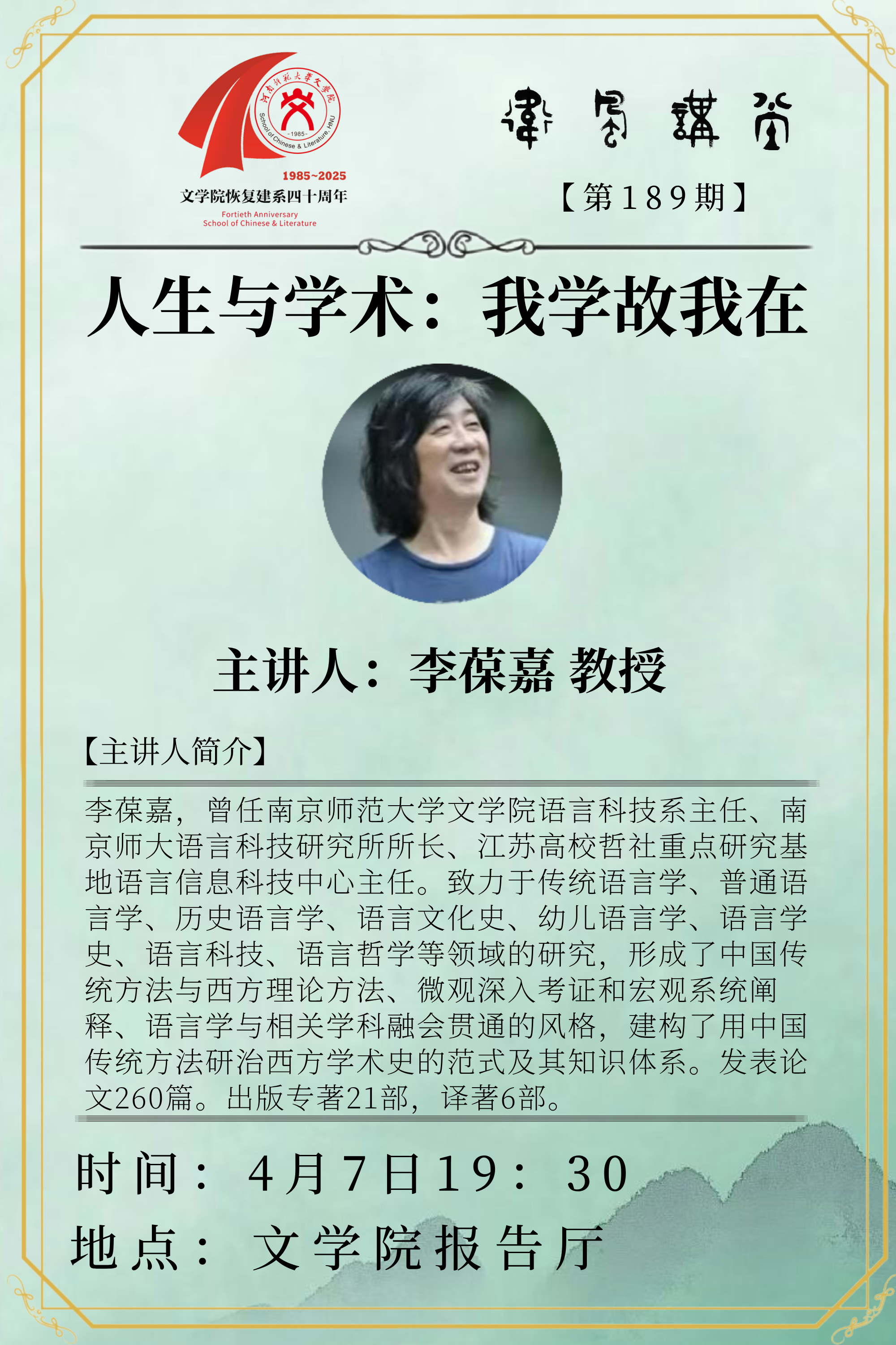 南京师范大学李葆嘉教授将应邀做客“卫风讲堂”
