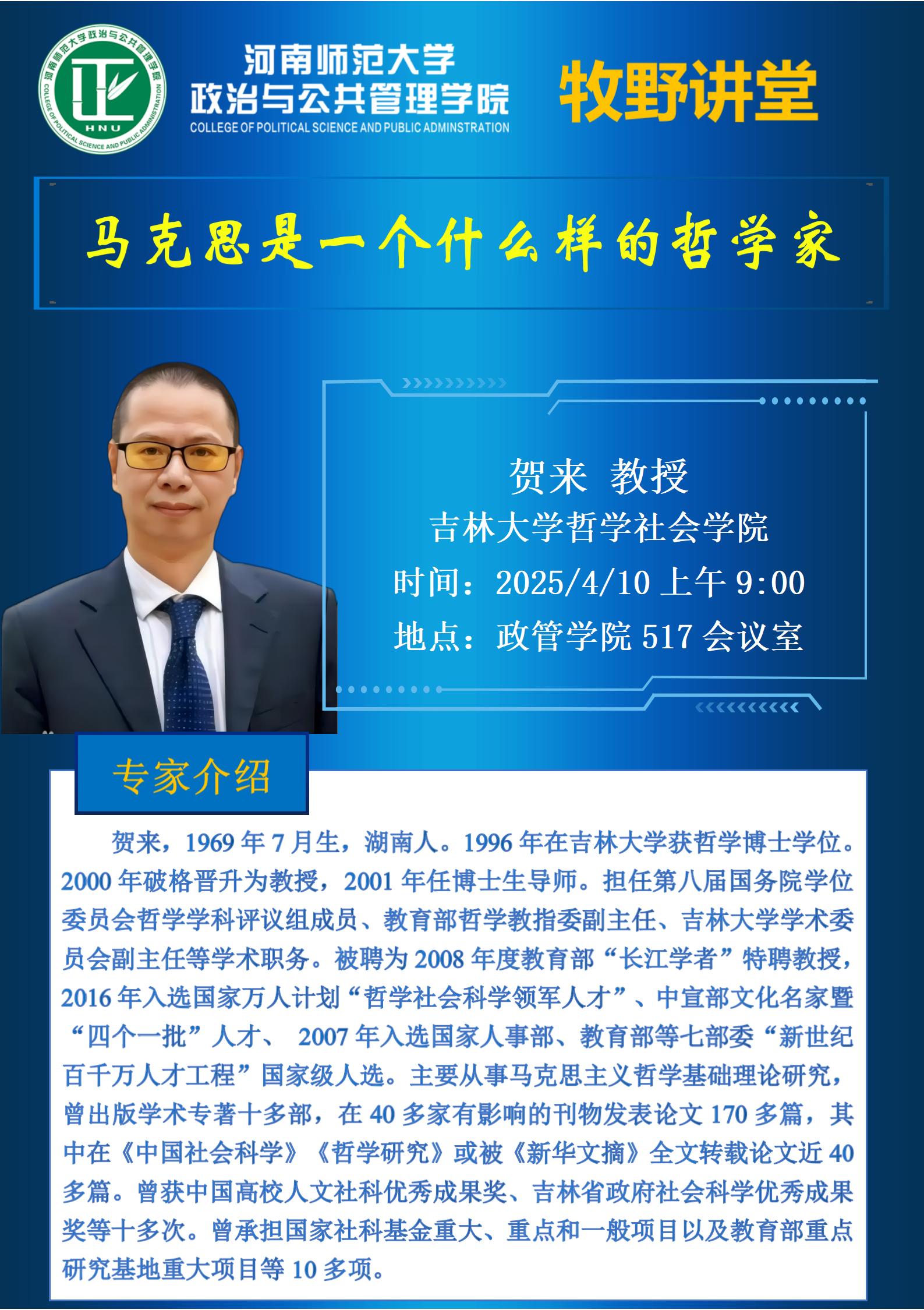 吉林大学贺来教授将应邀做客“牧野讲堂”