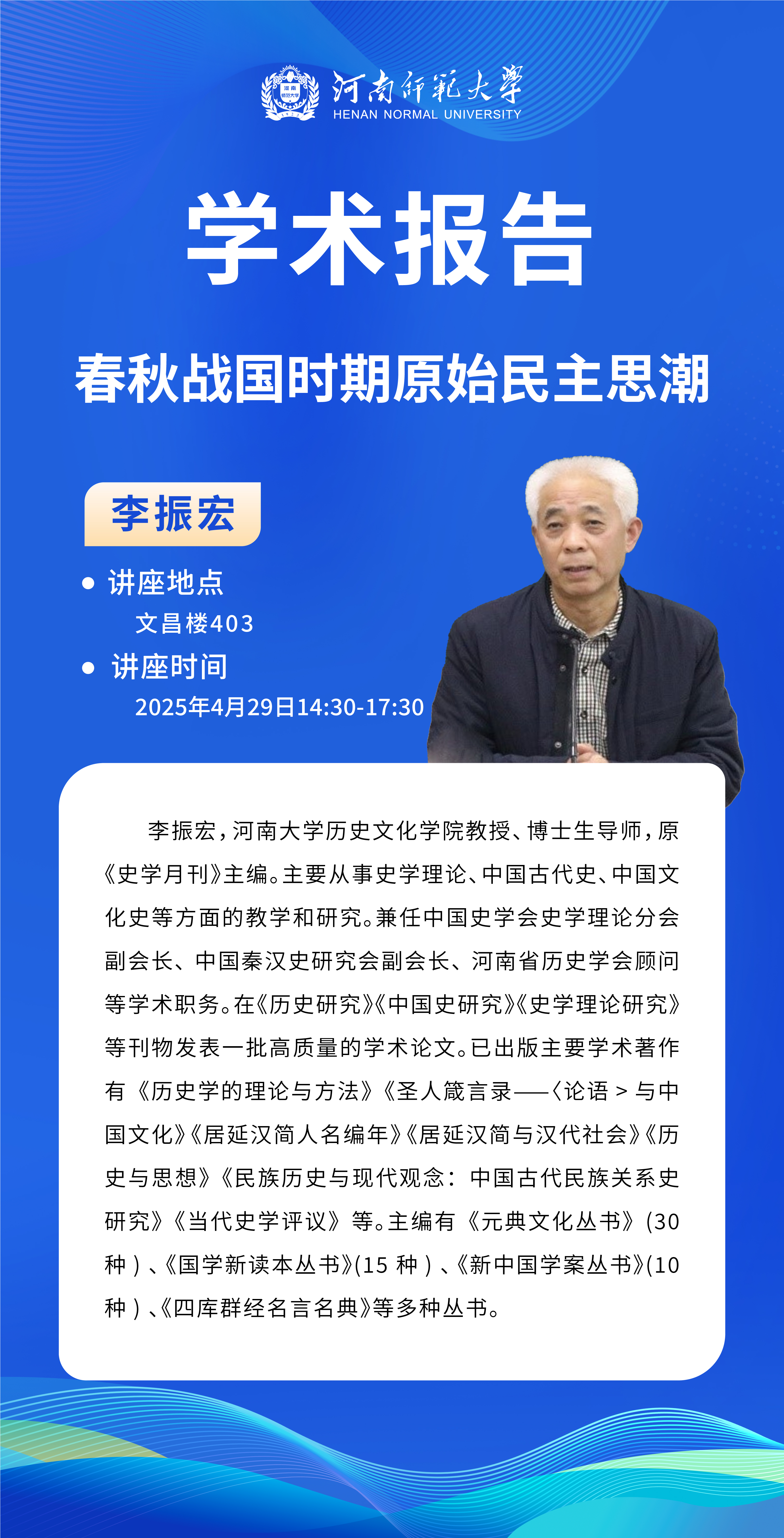 河南大学李振宏教授将应邀做客历史文化学院进行学术报告