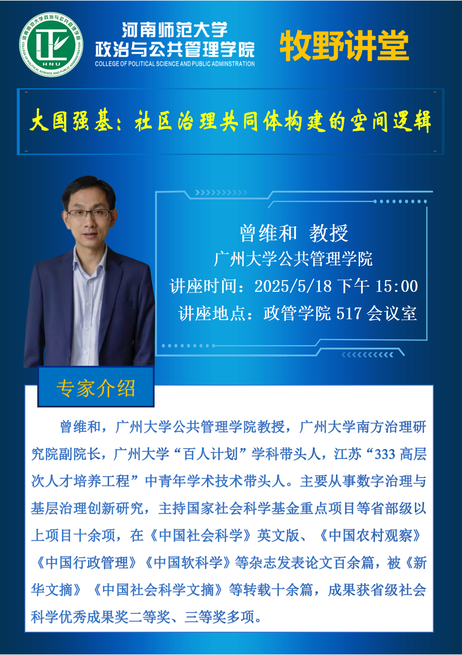 广州大学曾维和教授将应邀做客“牧野讲堂”