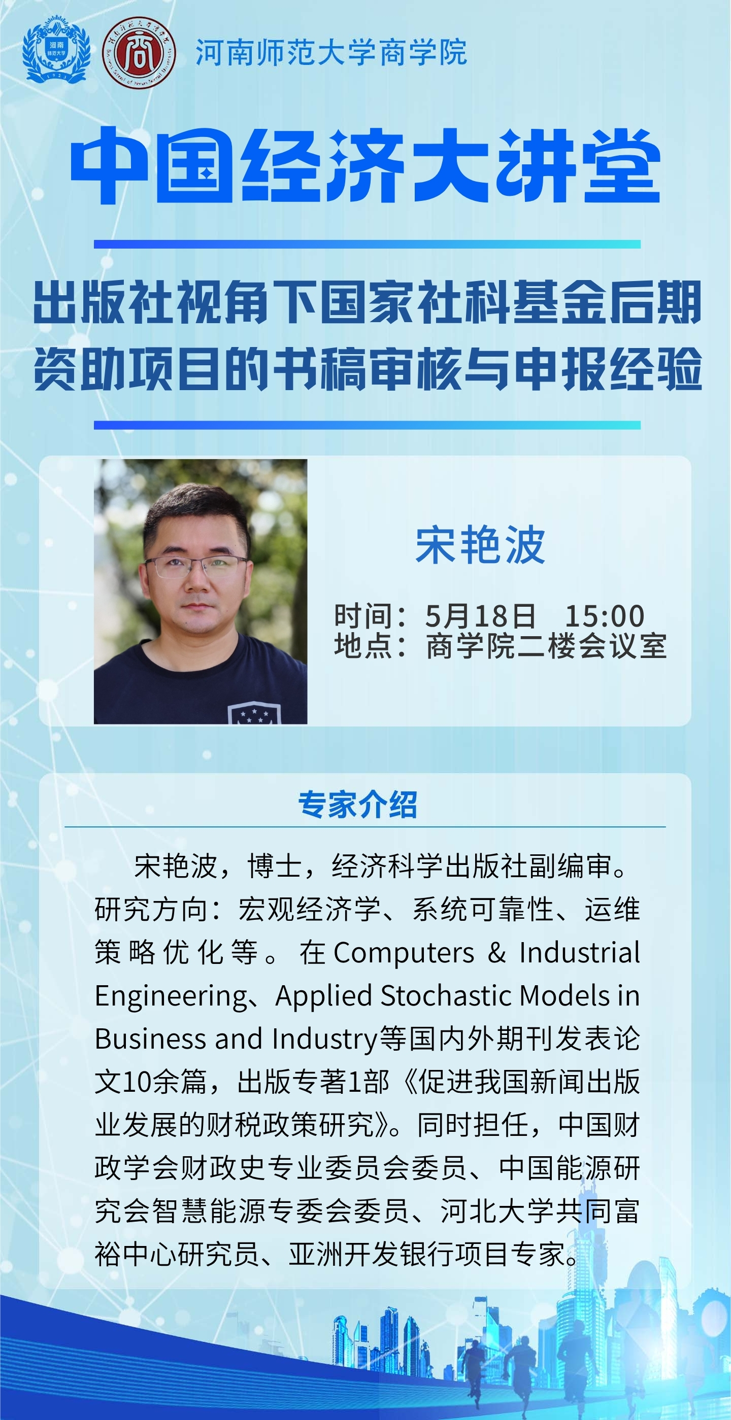 经济科学出版社宋艳波编审将做客“中国经济大讲堂”