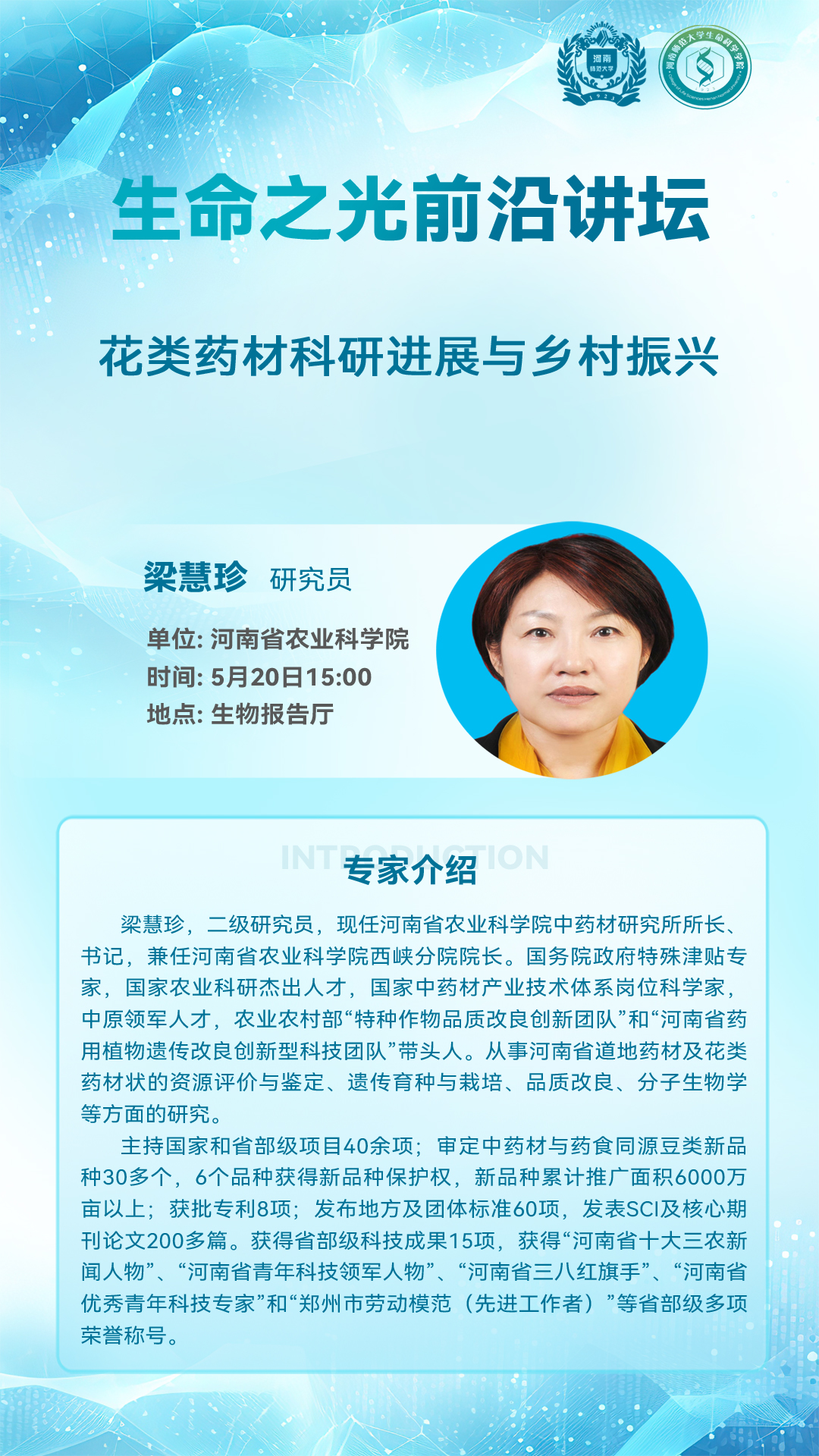 河南省农业科学院梁慧珍研究员将应邀做客“生命之光前沿讲坛”