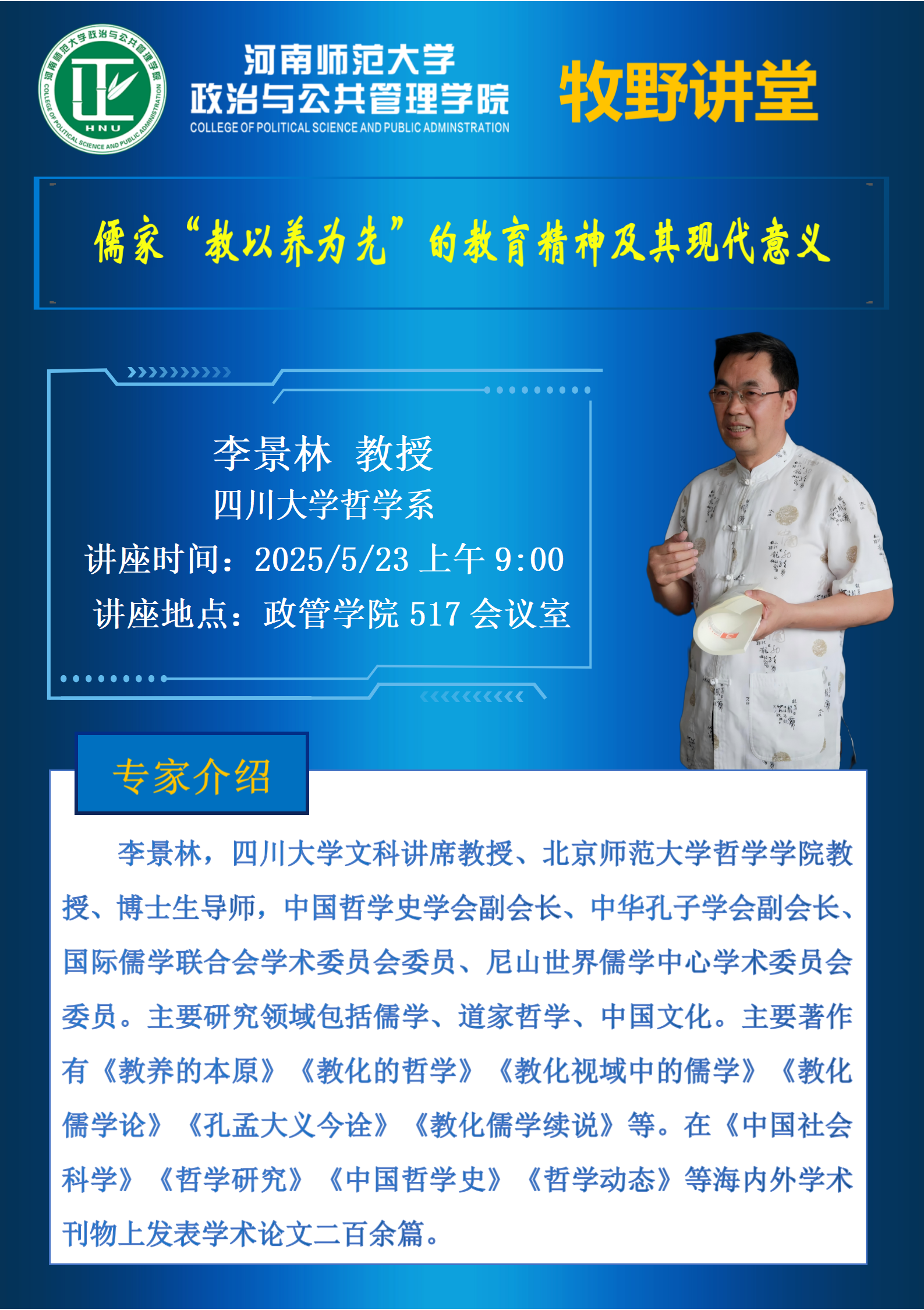 四川大学李景林教授将应邀做客“牧野讲堂”