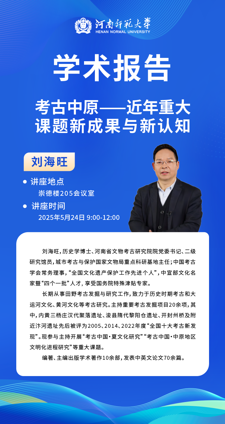 河南省文物考古研究院刘海旺教授将应邀做客“史学名家讲坛”