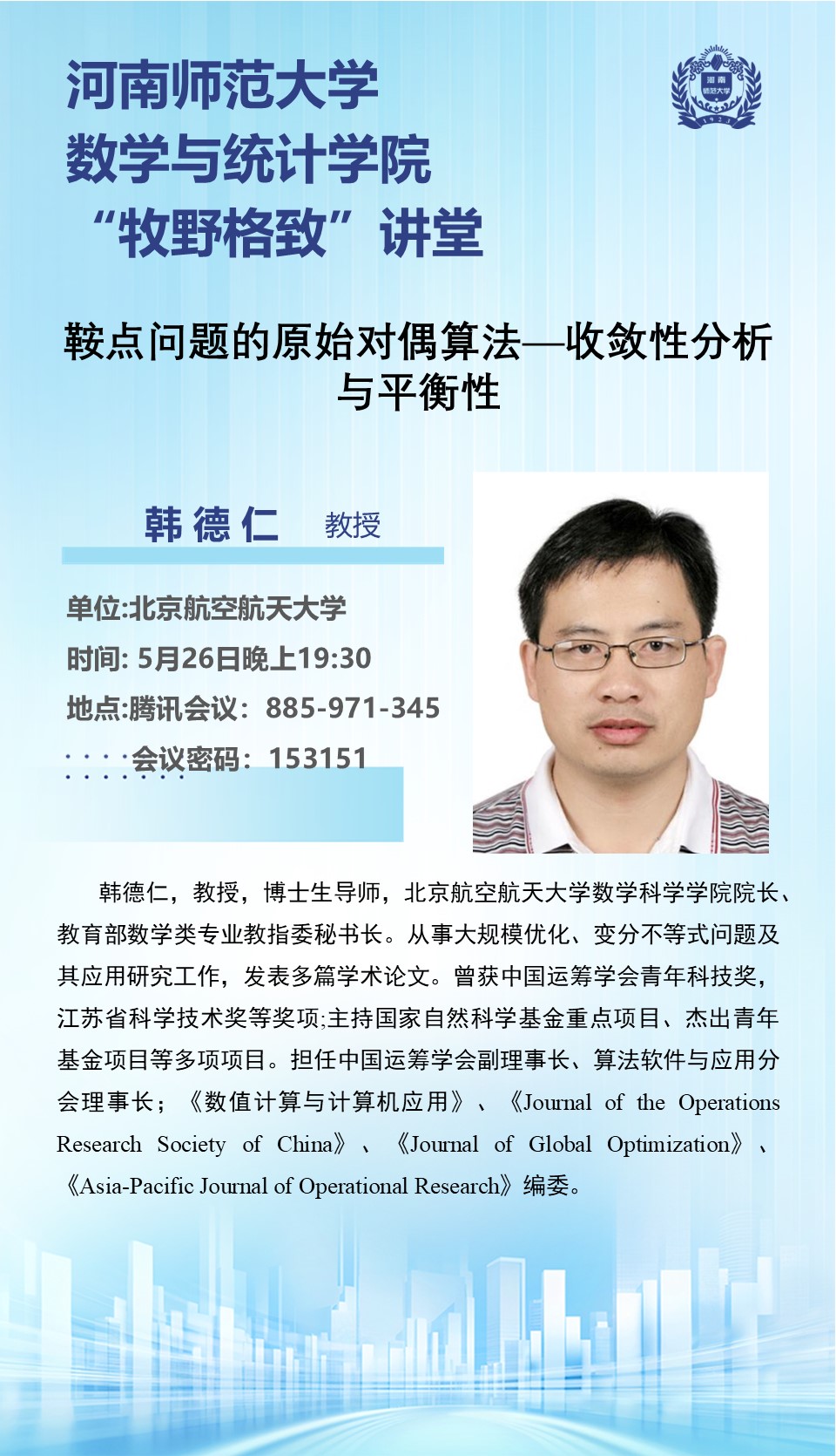 北京航空航天大学韩德仁教授将应邀做客“牧野格致”讲堂