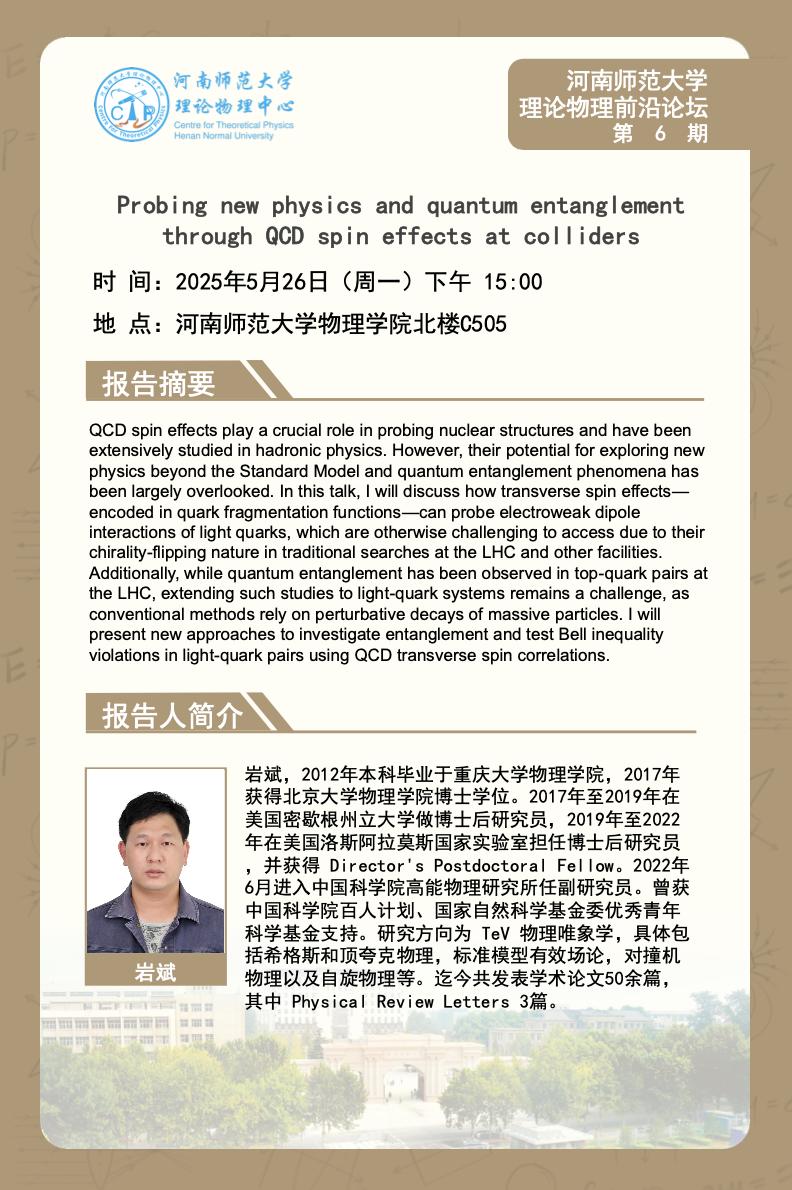 中国科学院高能物理研究所岩斌研究员将应邀做客“理论物理前沿论坛”