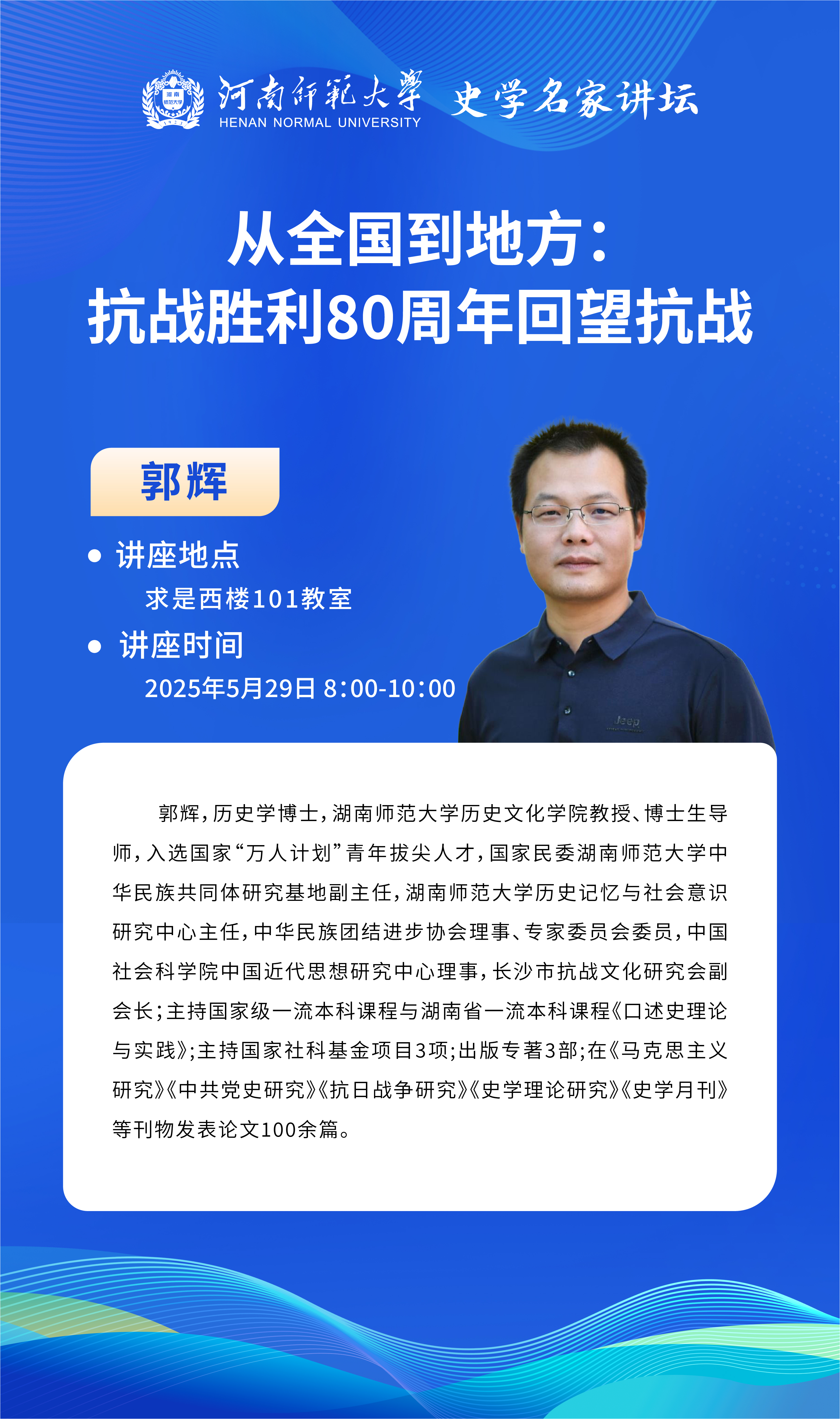 湖南师范大学郭辉教授将应邀做客“史学名家讲坛”