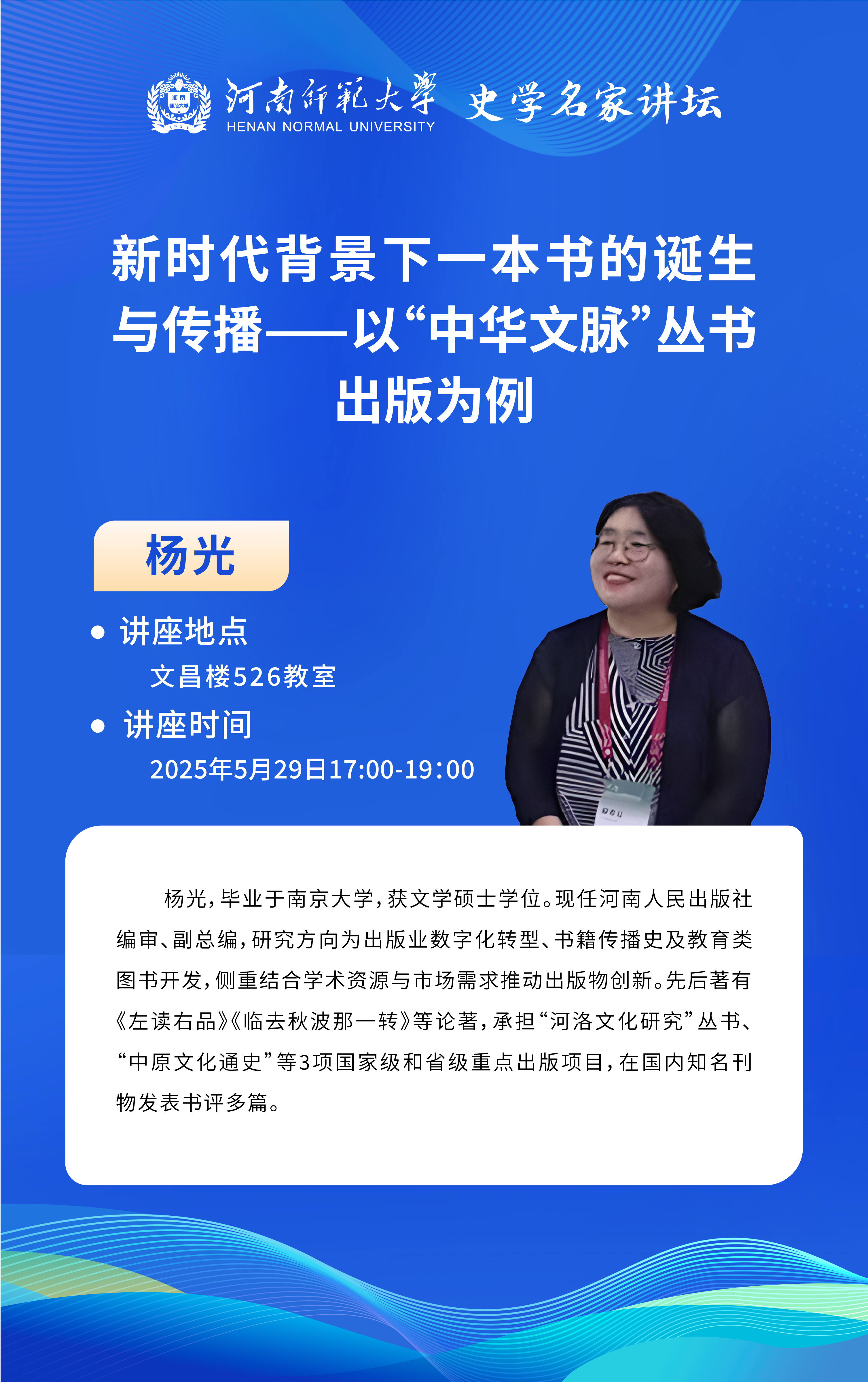 河南人民出版社杨光编审将应邀做客“史学名家讲坛”