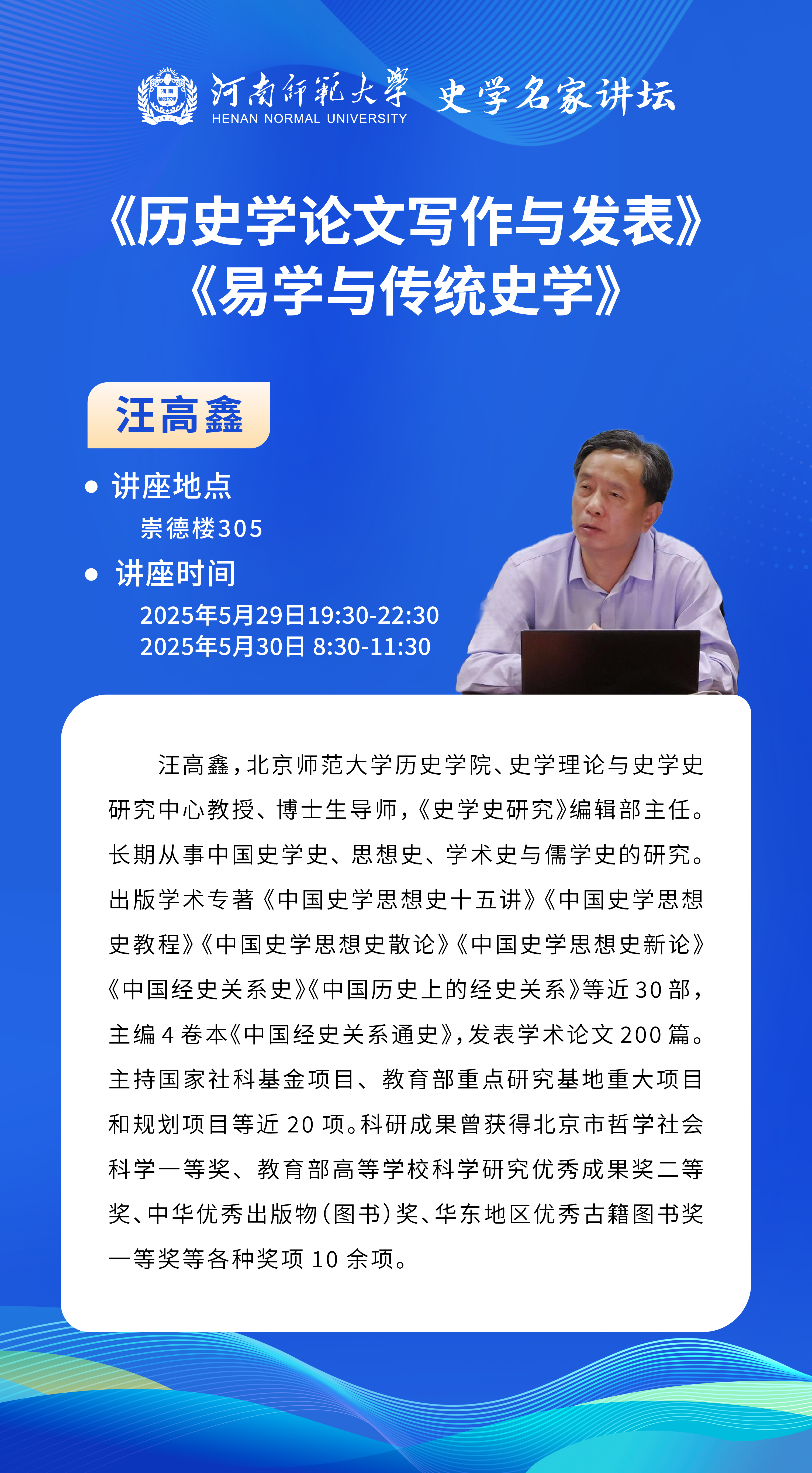 北京师范大学汪高鑫教授将应邀做客“史学名家讲坛”