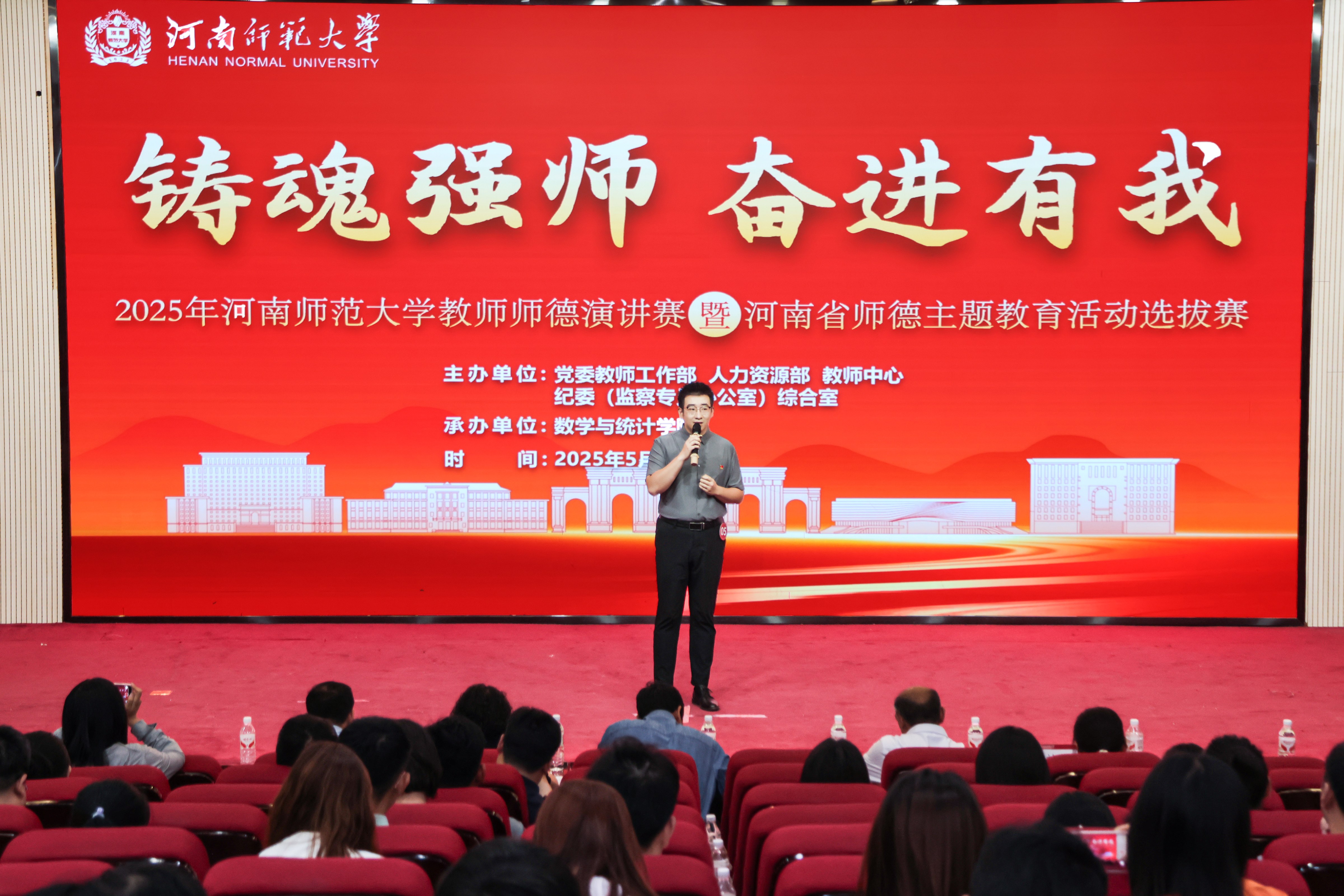 为落实河南省教育厅关于开展“铸魂强师、奋进有我”师德教育主题征文、演讲比赛和师德师风建设优秀案例征集活动的相关要求,5月27日下午,我校2025年教师师德演讲赛在求是东楼思政平台举行。副校长宋晔出席活动并致辞,相关职能部门负责人、各学院分管师德师风工作负责人、教学科研单位青年教师及学生代表等200余人参加。