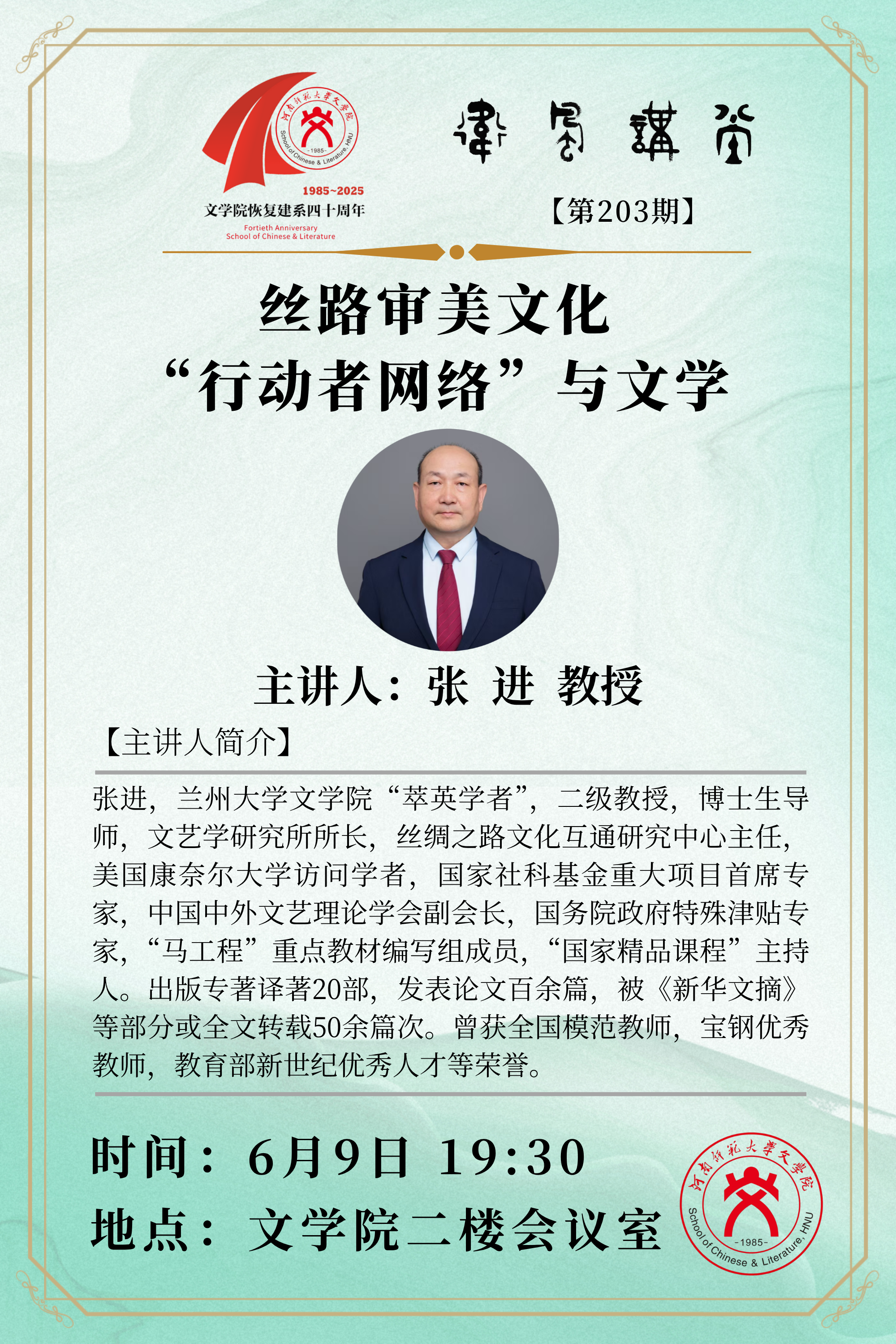 兰州大学张进教授将应邀做客“卫风讲堂”