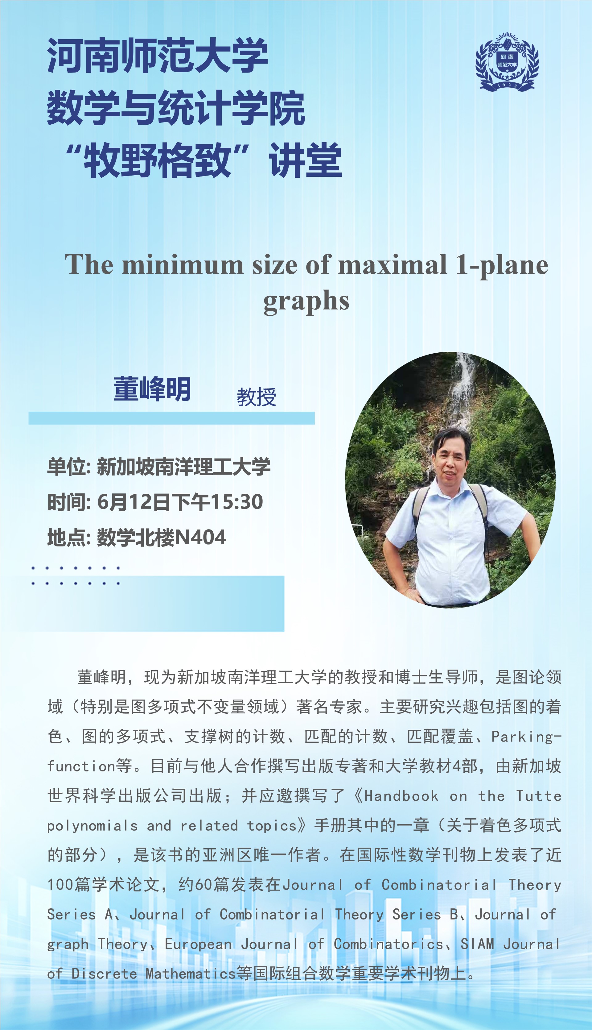新加坡南洋理工大学董峰明教授将应邀做客“牧野格致”讲堂