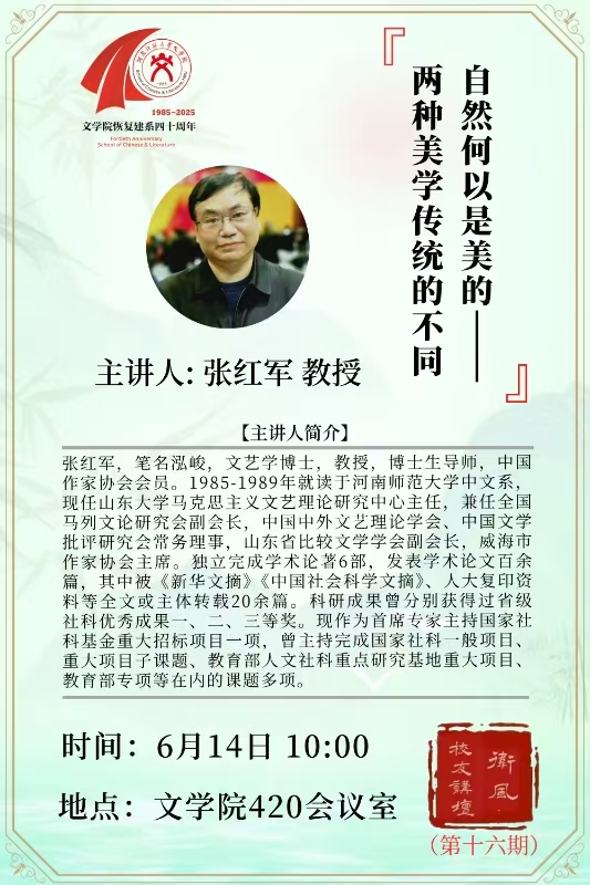 山东大学张红军教授将应邀做客文学院“卫风校友讲坛”
