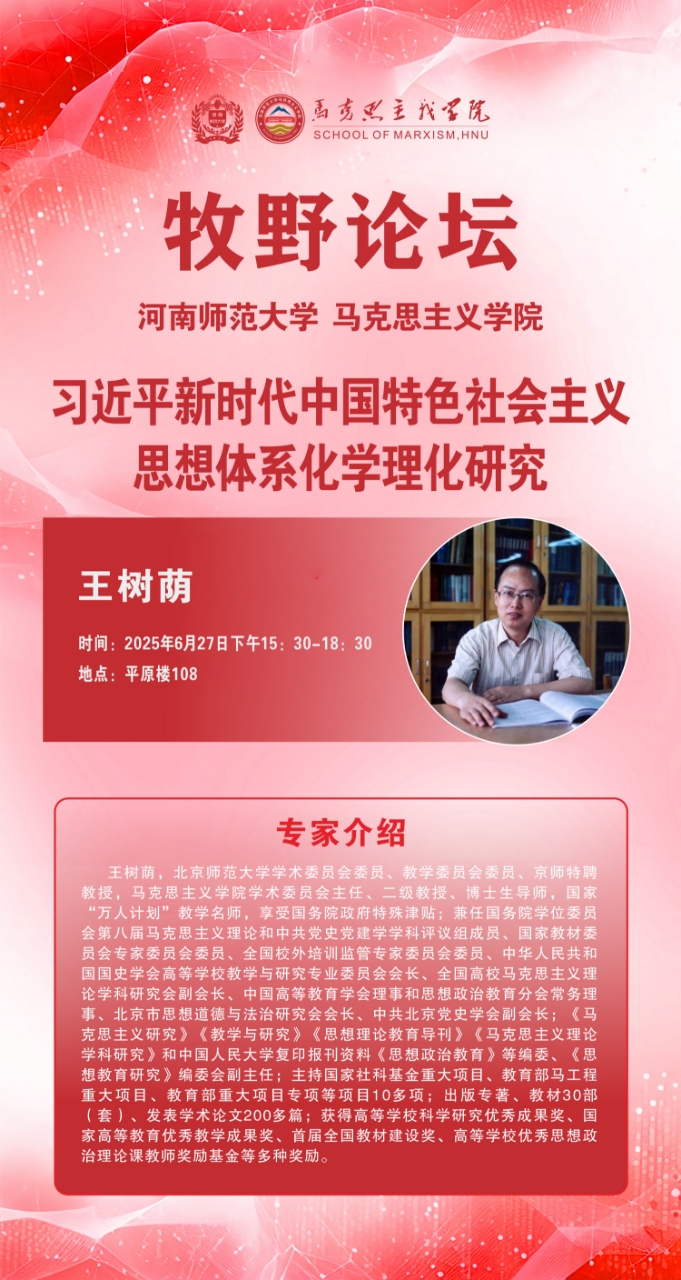 北京师范大学王树荫教授将应邀做客“牧野论坛”