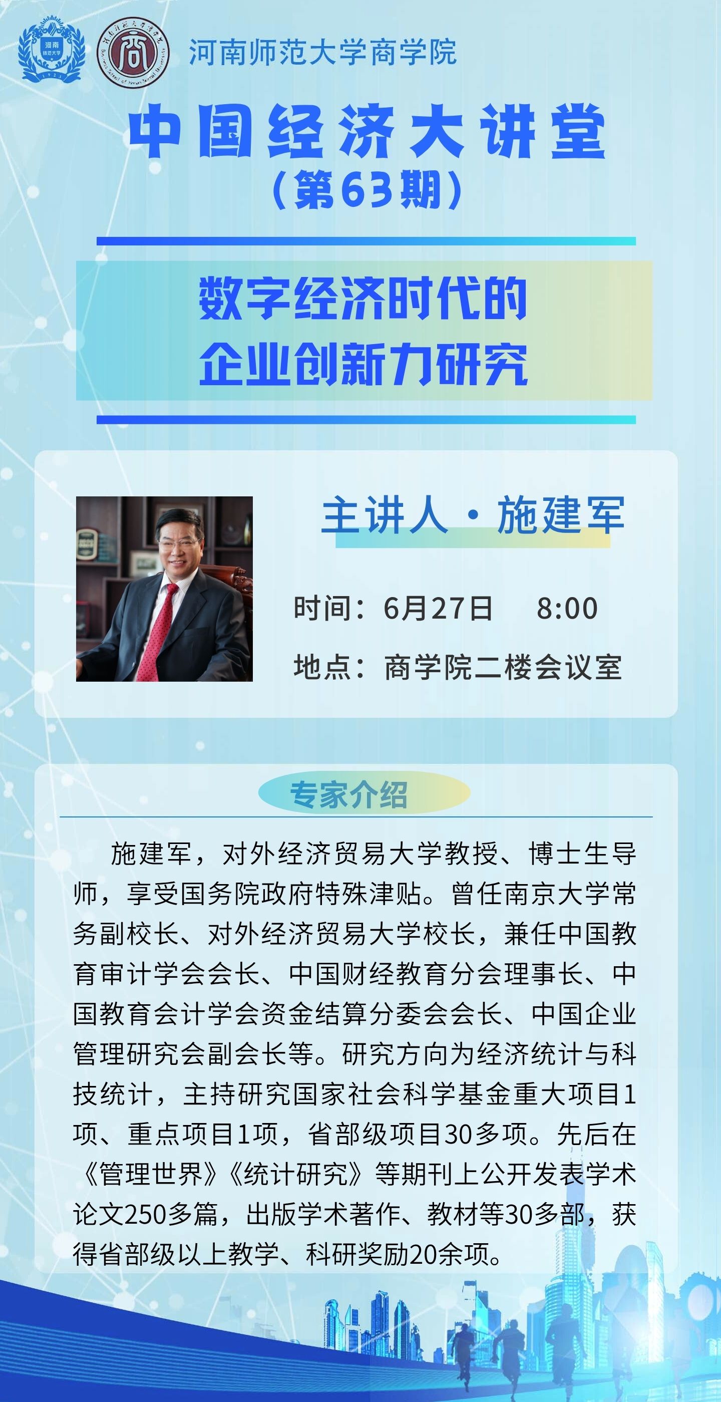 对外经济贸易大学施建军教授将应邀做客“中国经济大讲堂”