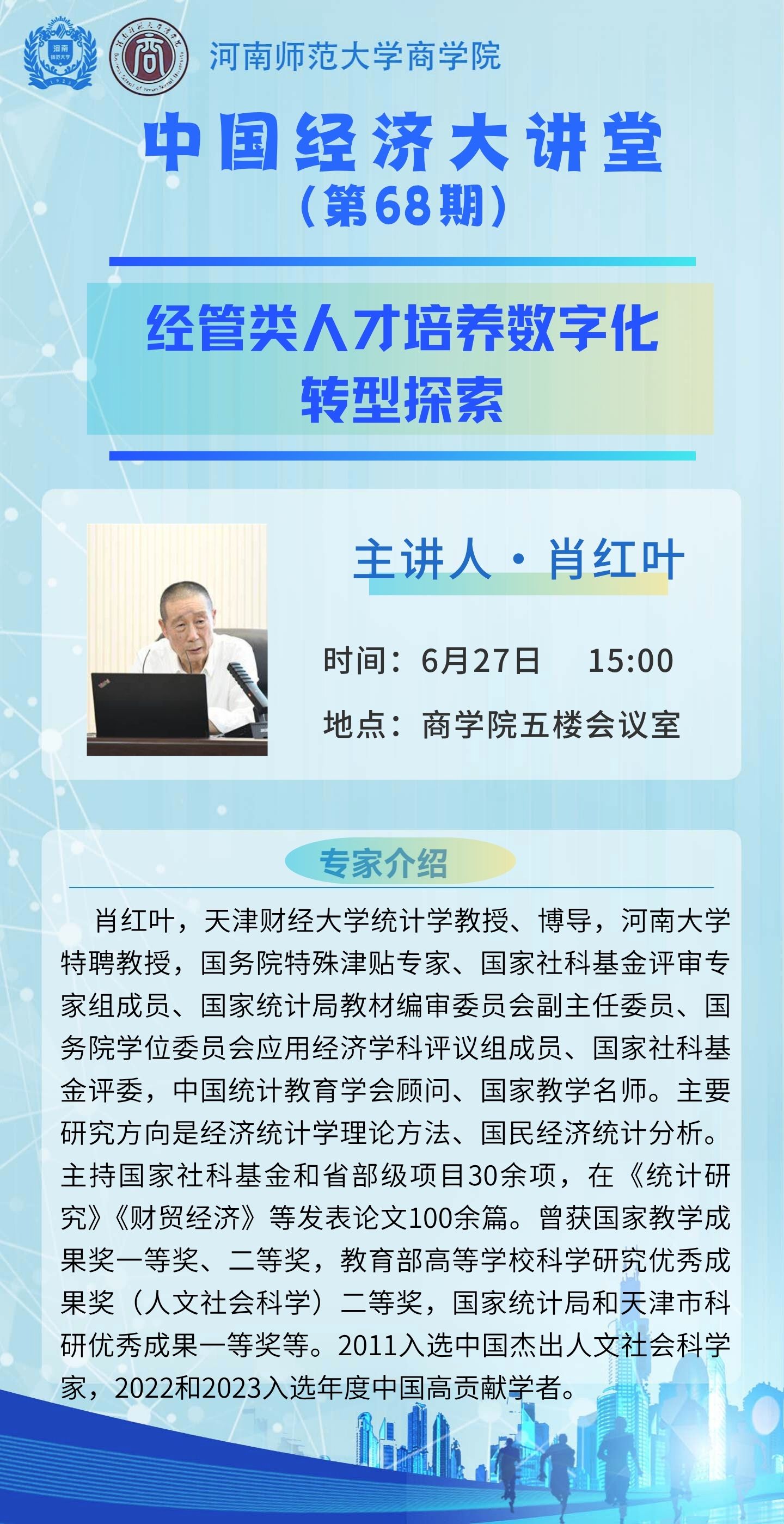 天津财经大学肖红叶教授将应邀做客“中国经济大讲堂”