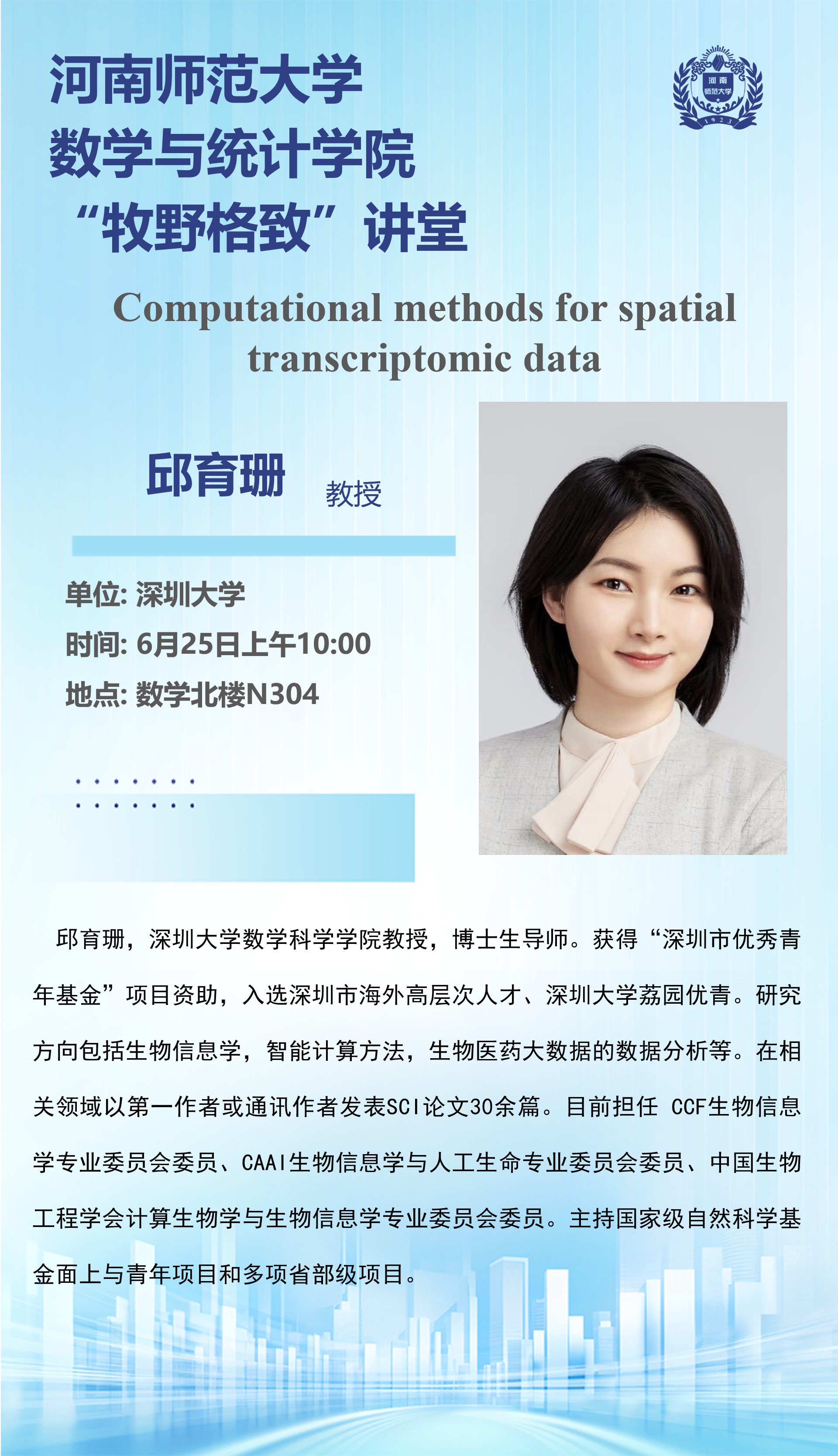 深圳大学邱育珊教授将应邀做客“牧野格致”讲堂