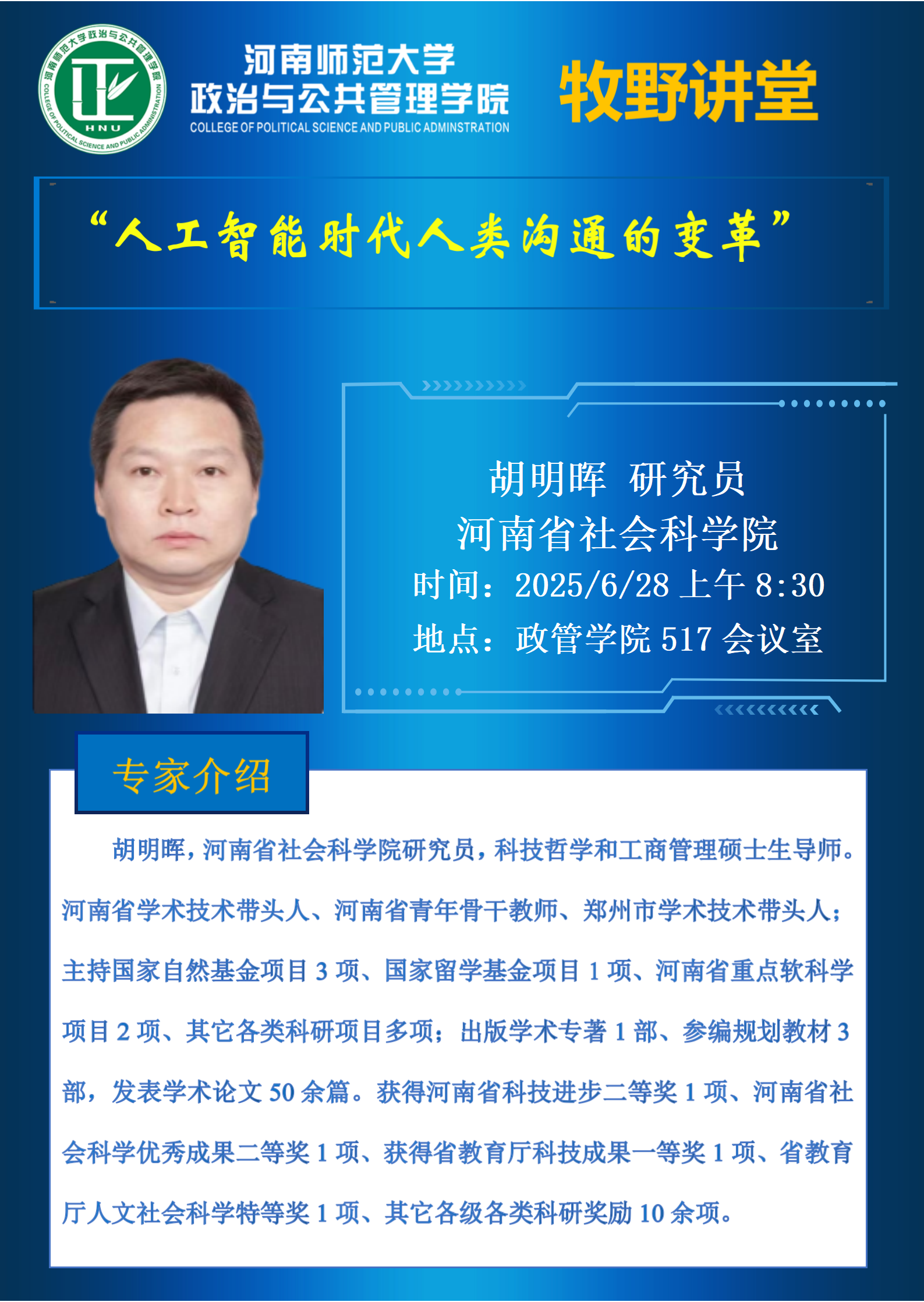 河南省社会科学院胡明晖研究员将应邀做客“牧野讲堂”