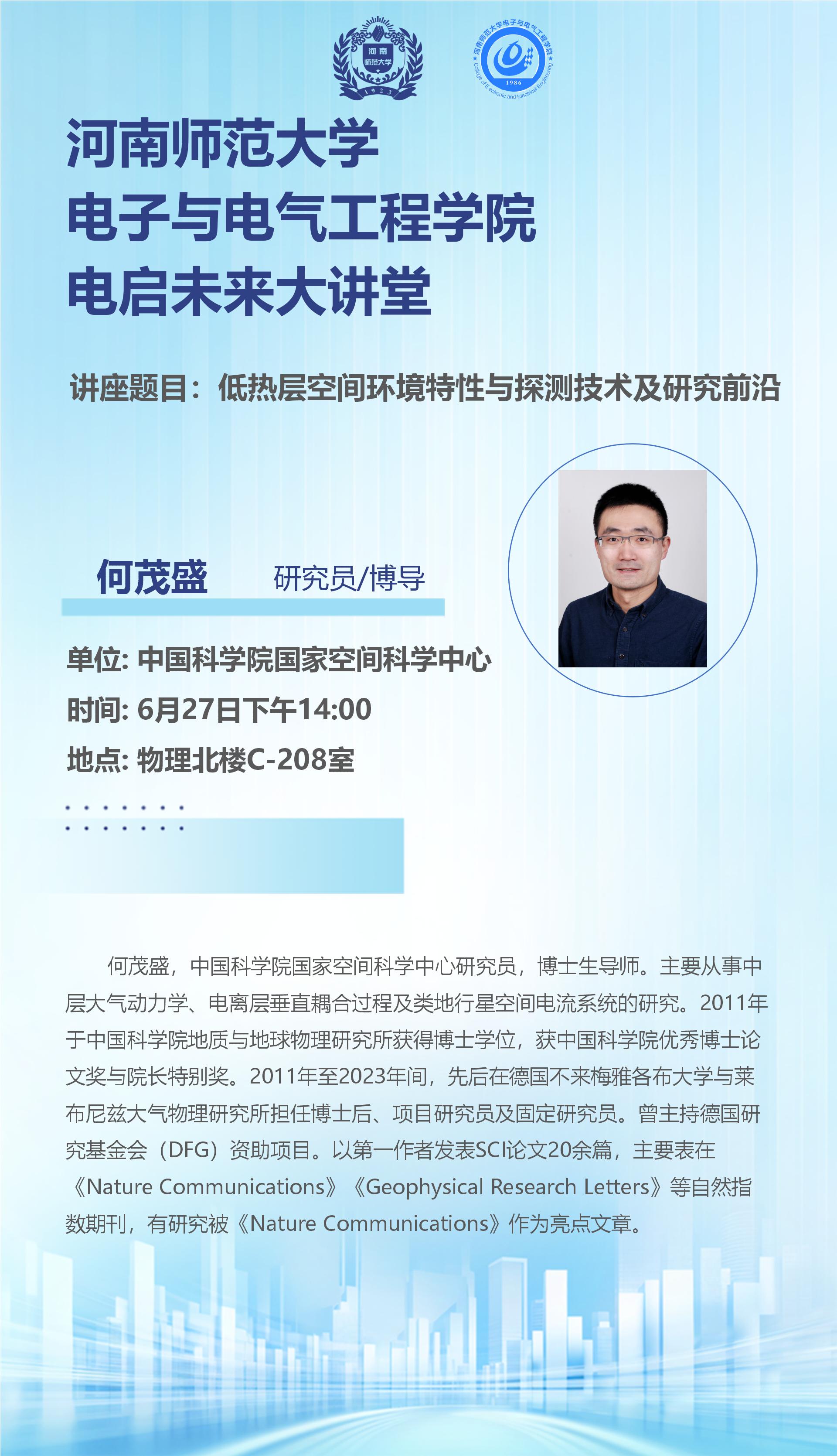 中国科学院国家空间科学中心何茂盛研究员将应邀做客“电启未来”大讲堂