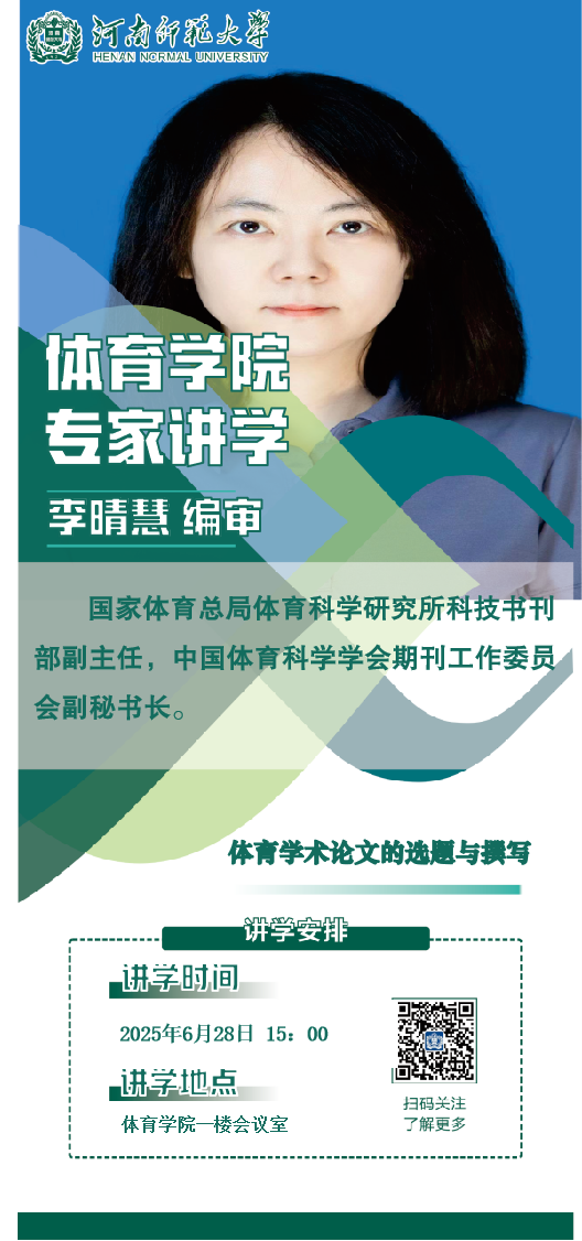 国家体育总局体育科学研究所科技书刊部副主任李晴慧编审将应邀做客“体育博雅论坛”