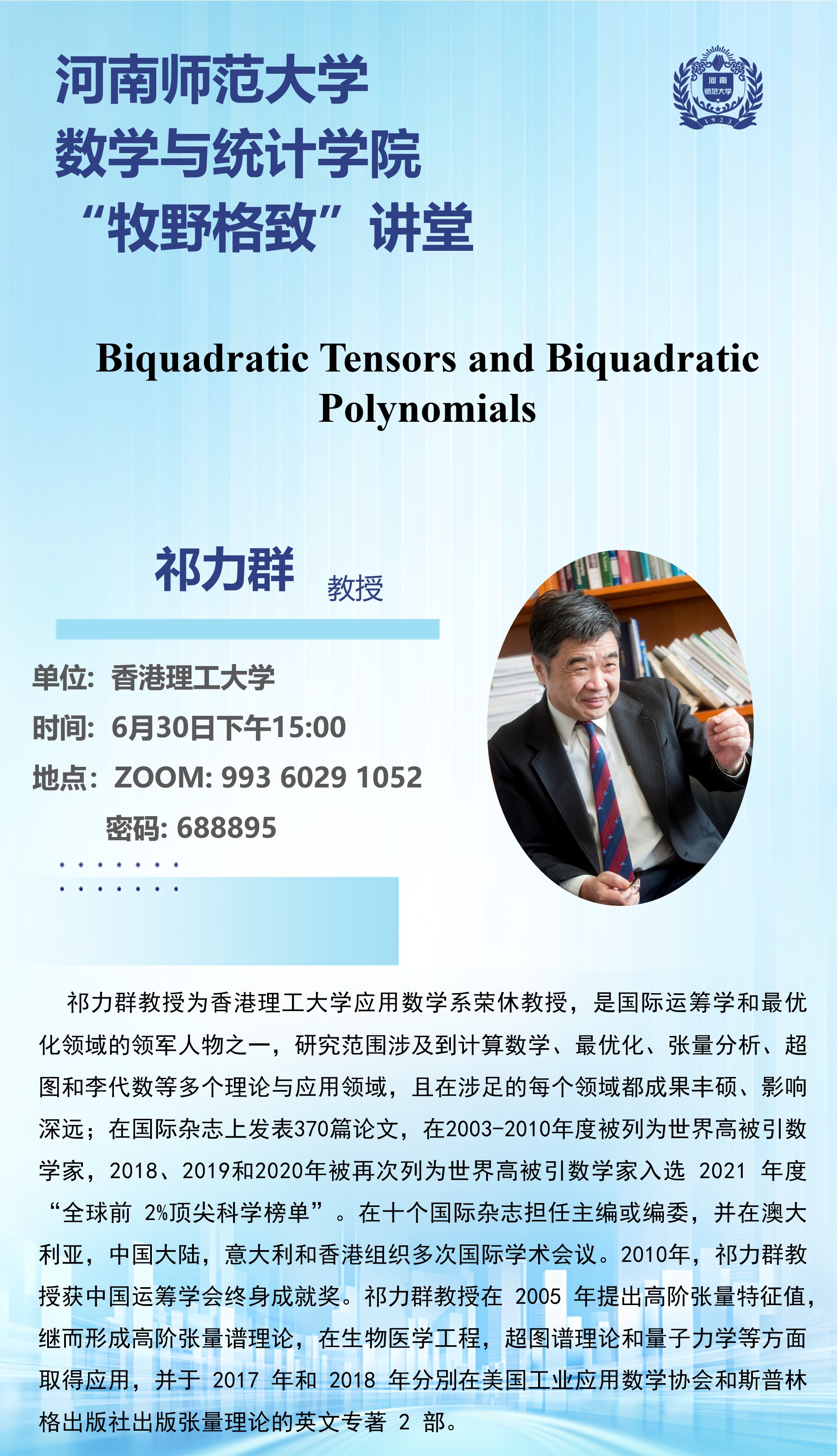 香港理工大学祁力群教授将应邀做客“牧野格致”讲堂