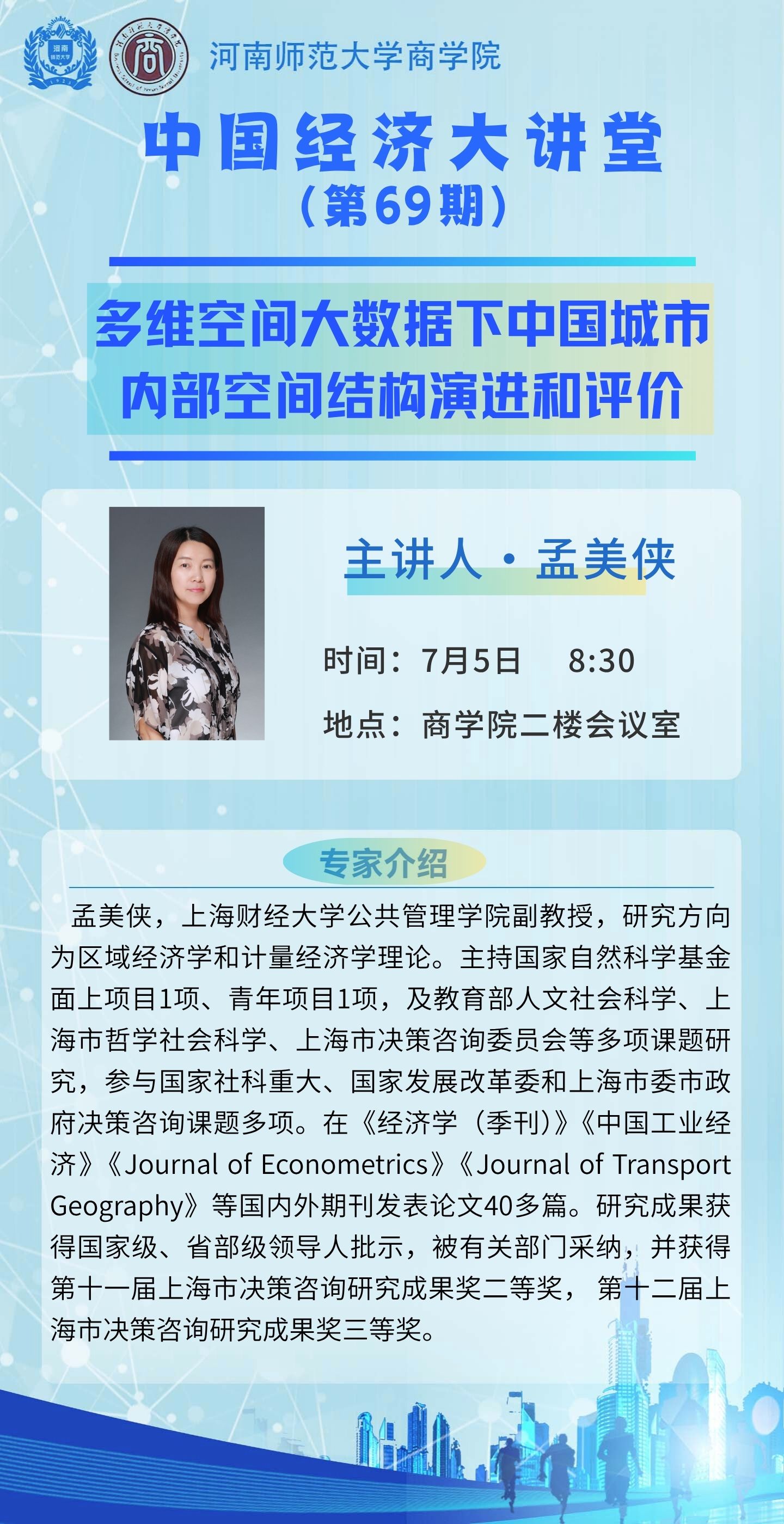 上海财经大学孟美侠教授将应邀做客“中国经济大讲堂”