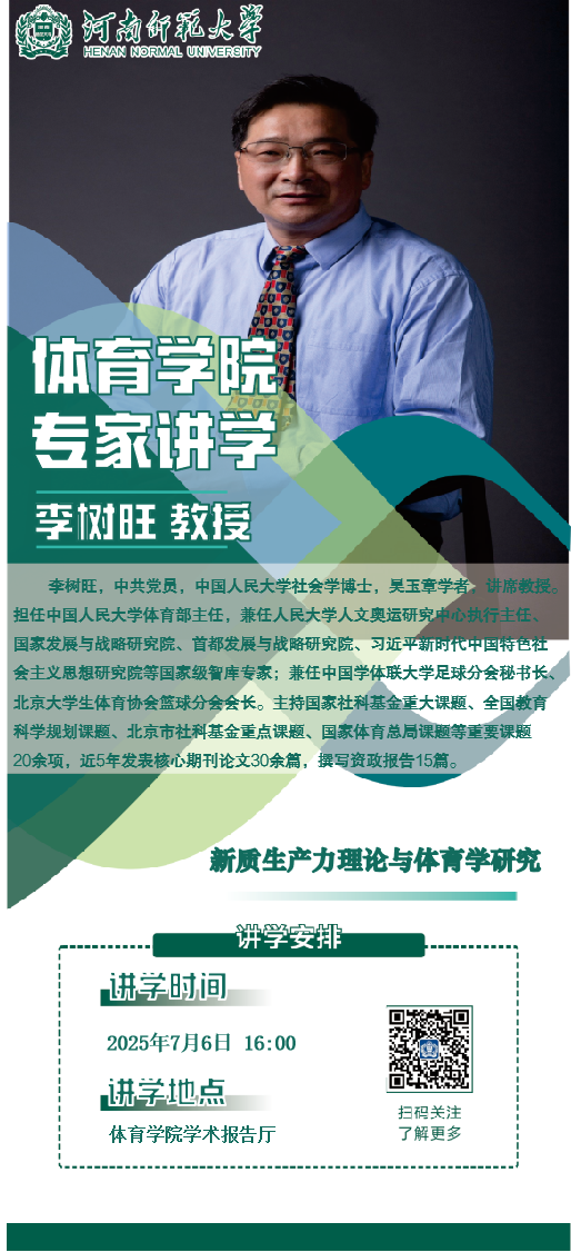 中国人民大学李树旺教授将应邀做客“体育博雅论坛”